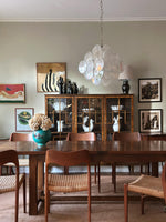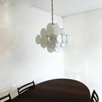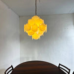 • When lit, the true magic of the chandelier is revealed. Warm light emanates from within the spherical form, glowing softly through each textured glass slice. The unique surface of the glass refracts and fractures the light in countless directions, creating a mesmerizing dance of luminosity and soft shadow across your walls and ceiling. The effect is an instantly warm, inviting, and deeply romantic atmosphere, perfect for intimate dinners, relaxing evenings, or adding a touch of sophisticated elegance to your daily life.