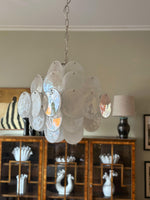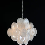• Each individual glass panel is a unique work of art. Cast in a soft, opaline white, the glass features a deeply textured, almost liquid surface that captures and plays with light. The translucent material is finished with intentional, naturalistic smudges and variations, ensuring no two chandeliers are exactly alike. This artistic quality diffuses light with a gentle, museum-grade softness, eliminating harsh shadows and glare to create a universally flattering illumination.
