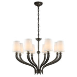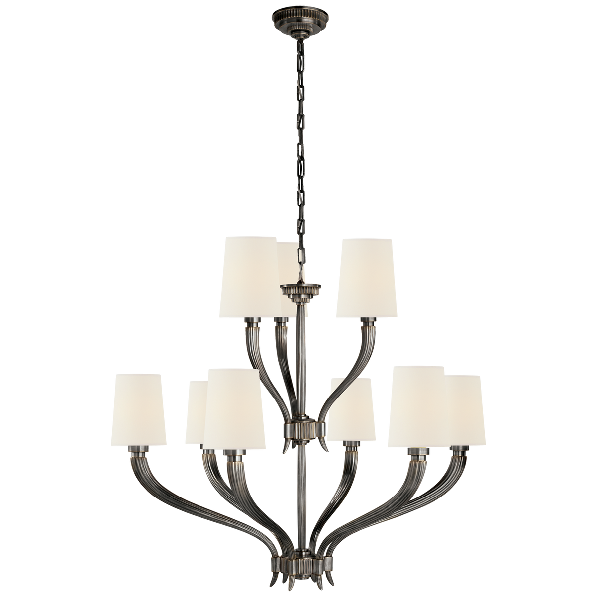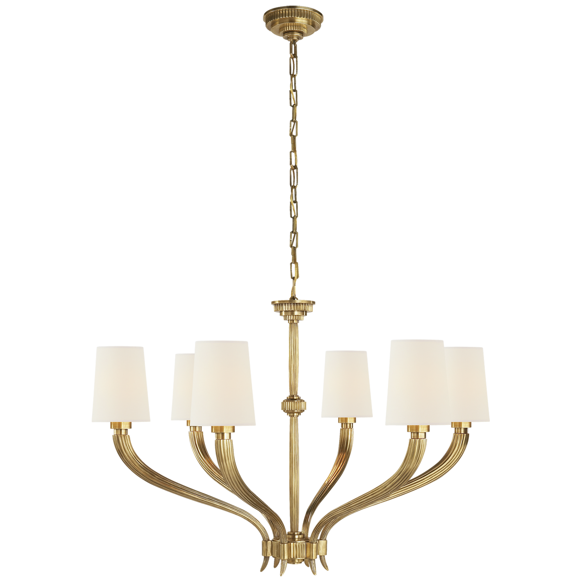 - Elevate your space with the Patty Chandelier, a stunning fusion of refined craftsmanship and contemporary design. Featuring ribbed detailing for added texture and depth, this chandelier exudes understated luxury. The elegant linen shades soften the light, creating a warm and inviting ambiance perfect for dining rooms, living spaces, or entryways.