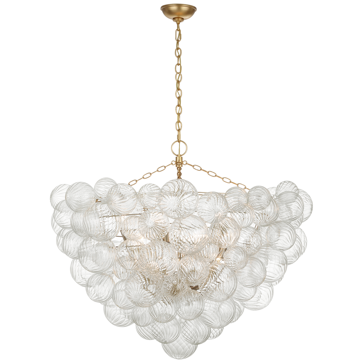 - Elevate your space with the Talia series, where artisanal glasswork transforms the classic globe light into a breathtaking statement piece. Each chandelier features a collection of hand-blown, swirled glass orbs, cradled in delicate metal baskets. As light filters through the textured glass, it creates a mesmerizing dance of shimmer and shadow, casting a warm and inviting glow.