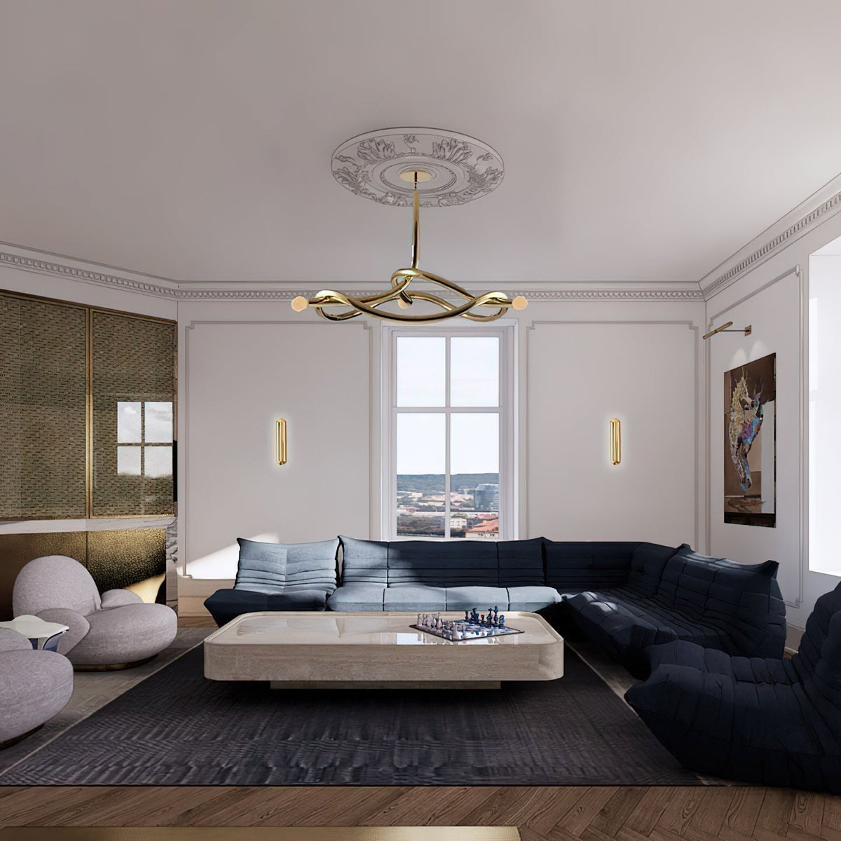 - The Tryst Chandelier is a testament to the exquisite interplay of form and function. Inspired by the delicate dance of interconnected elements, this unique fixture celebrates the grace and strength found in perfect union.