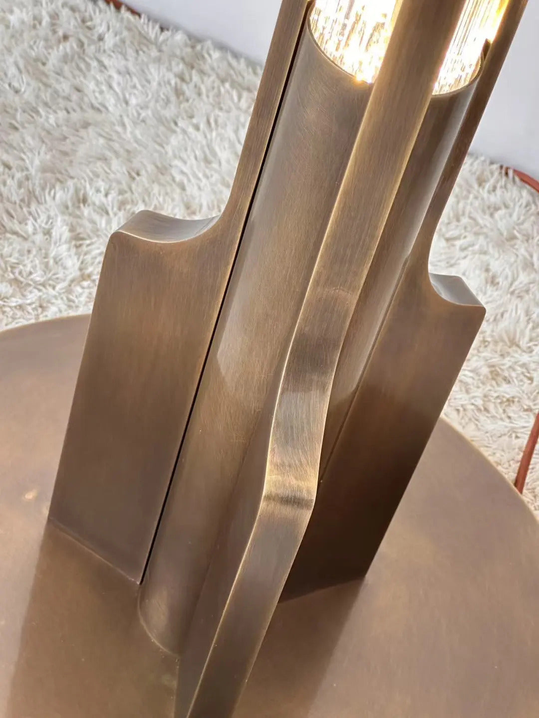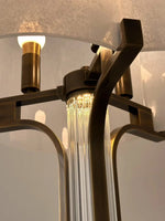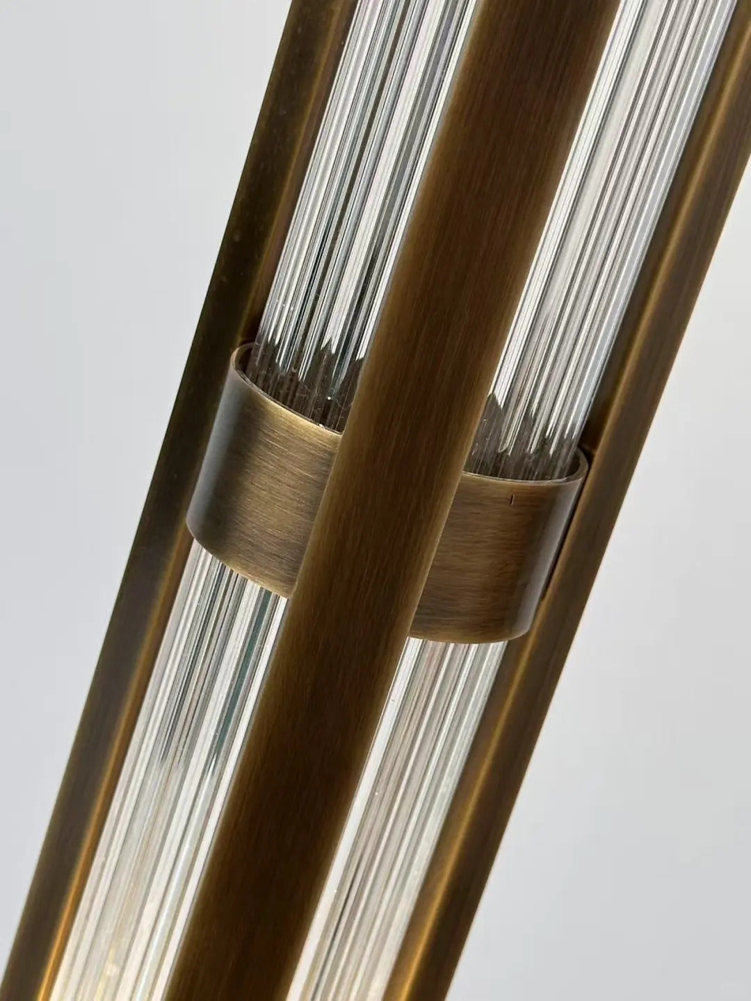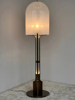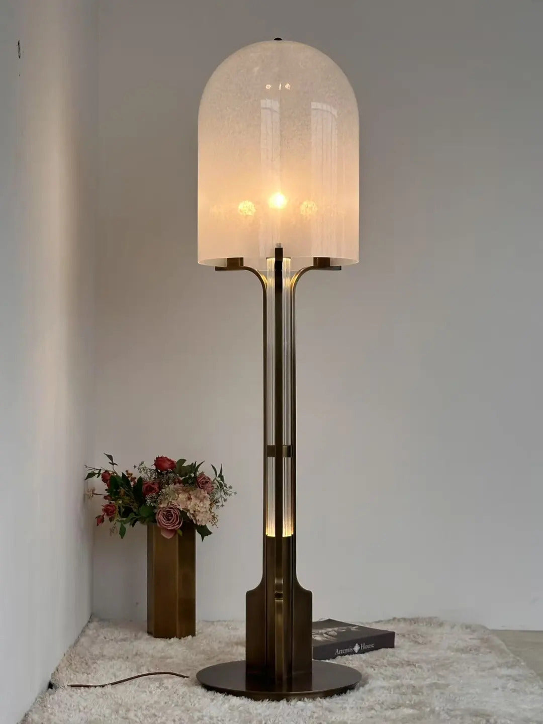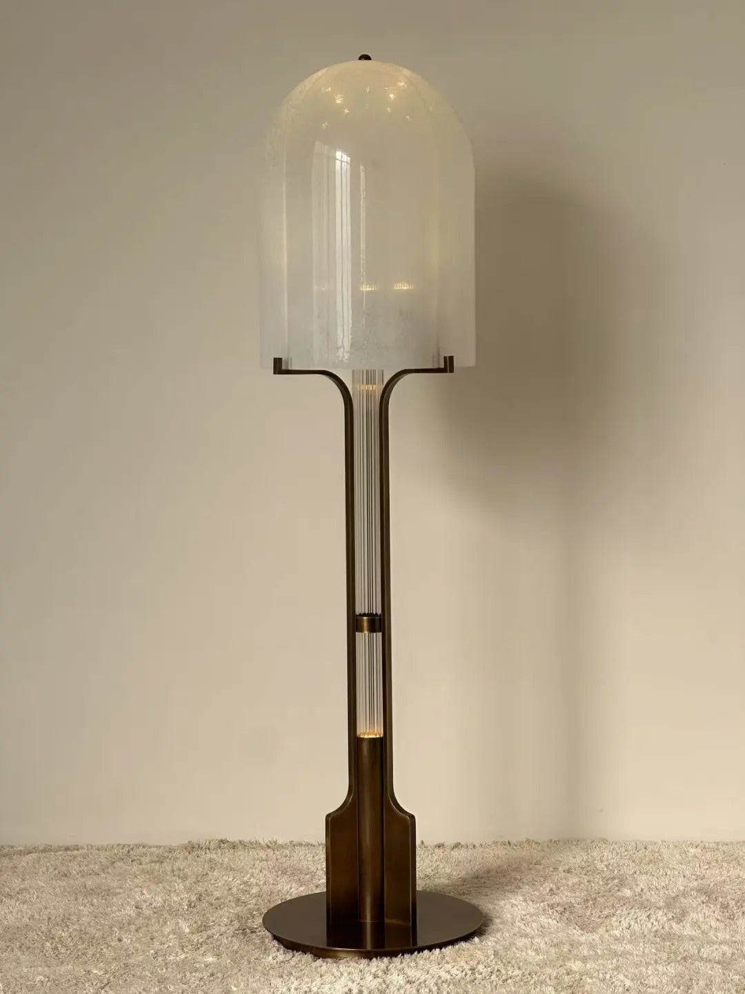 - Bring sophisticated Art Deco glamour to your home with the Aura Dome Floor Lamp, an exquisite lighting piece that offers innovative, dual-layer illumination. Its beautiful cloud-glass dome is subtly detailed with natural grains, resting atop a solid, anodised brass base finished in a rich, dark chocolate patina. The elegance continues up the vertical post, its vertical post that is built with a second light source that allows its inner fluted glass tube to glow in three lux levels.