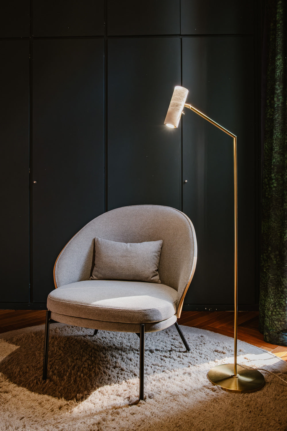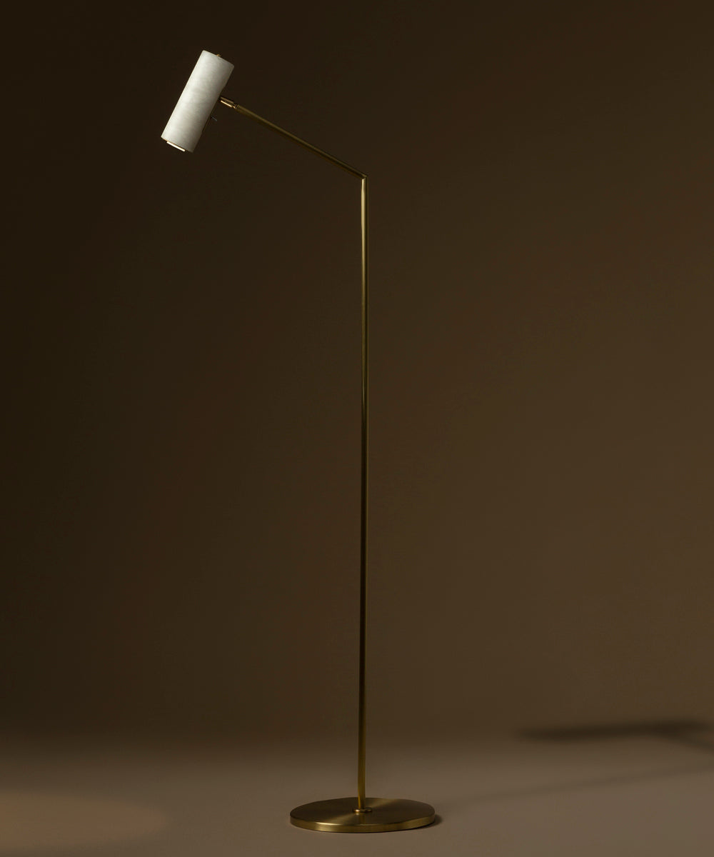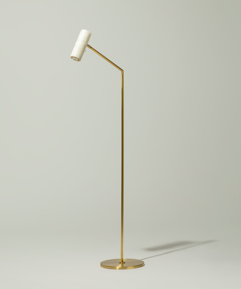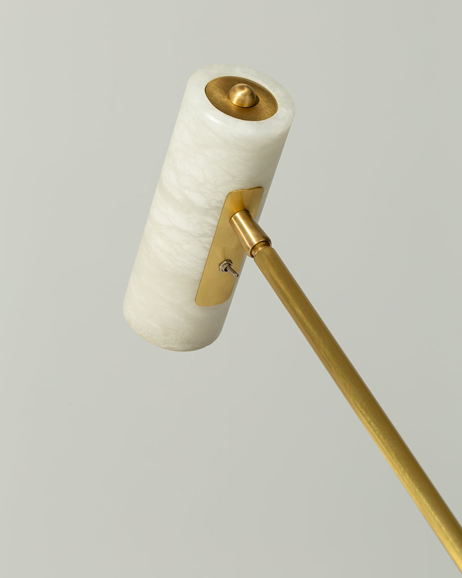 - Designed for perfectionists and avid readers, this lamp is engineered to be the perfect companion to your favorite armchair or sofa. The fully orientable cylindrical alabaster shade houses a focused spotlight, allowing you to direct light exactly where you need it for uninterrupted reading or to highlight a cherished corner of your home.