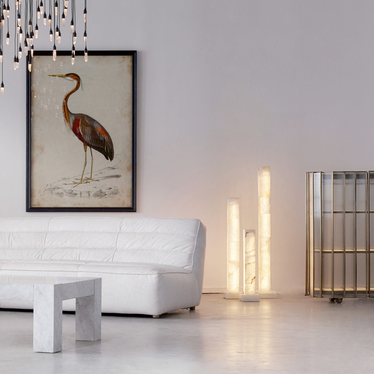 • We believe the beauty of the material should speak for itself. The Frozen Floor Lamp is designed with pure, simple shapes and an almost invisible frame, ensuring your focus remains entirely on the enchanting alabaster column. This sleek, frameless silhouette allows it to blend seamlessly into any décor, from contemporary and Scandinavian to rustic and bohemian.