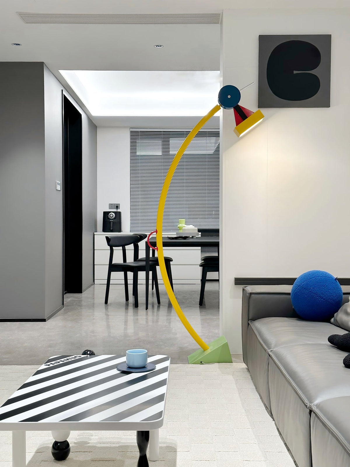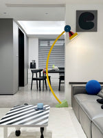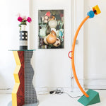 - A burst of vibrant energy for your modern space, the Treetops Floor Lamp is a dynamic sculptural piece designed by Ettore Sottsass in 1981. This iconic lamp, crafted from metal, features a captivating interplay of geometric shapes, each painted in a bold, contrasting color.