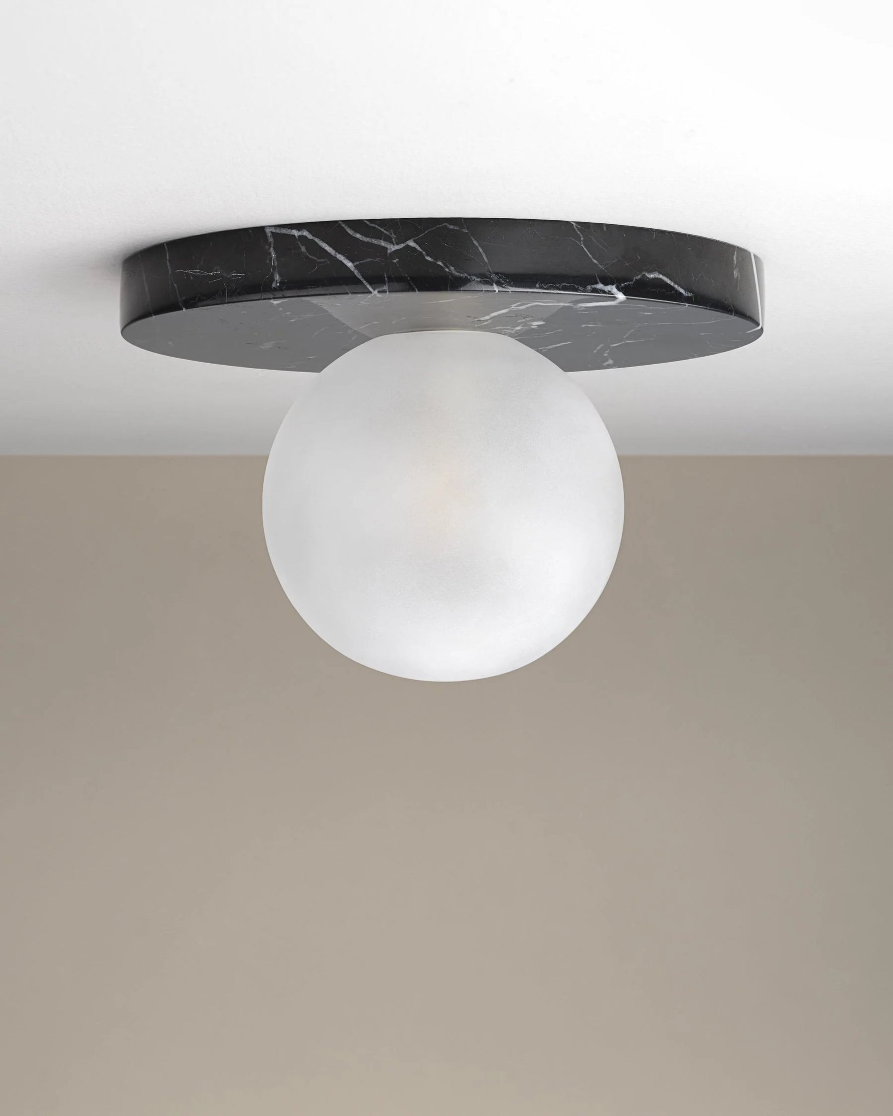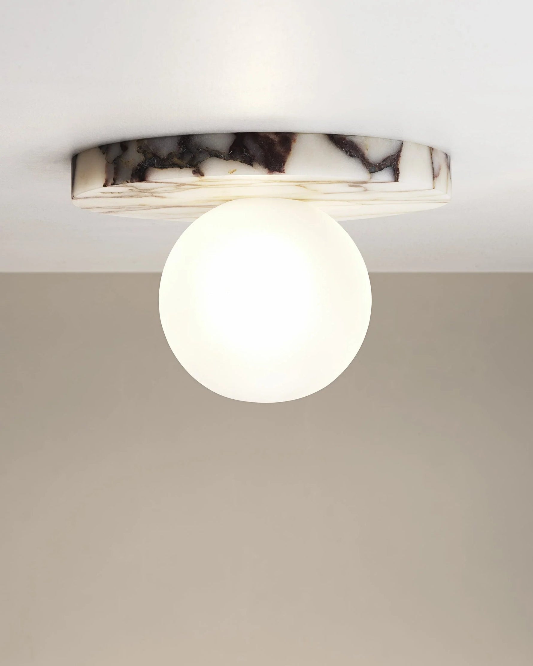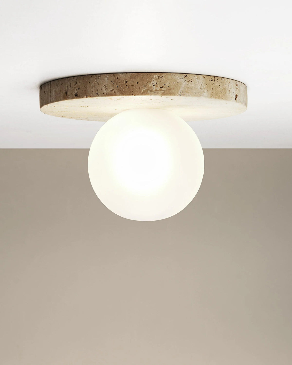 - A daring tribute to timeless design, the Lucie Flush Mount Lamp draws inspiration from the graceful proportions of Dior's iconic pearl earrings, blending sophistication with modern allure. At its heart lies a circular stone backplate, an exquisite canvas that enhances the soft, inviting glow it radiates. Perfectly balancing Parisian elegance and New York modernity, Lucie transforms any space into a haven of refined luxury.