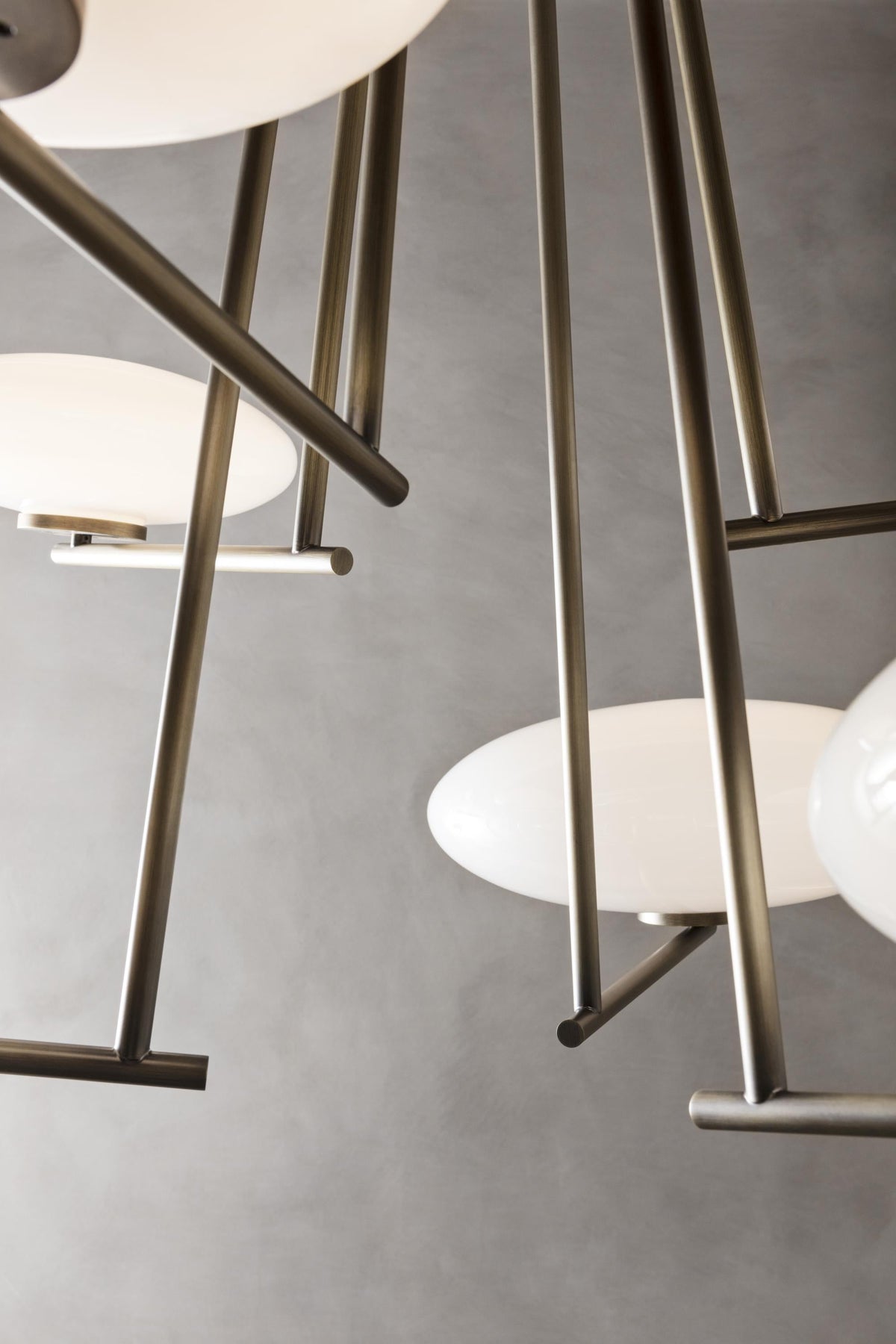 - Blurring the line between functional lighting and sculptural art, the Nanci Ceiling Lamp captivates with its refined simplicity and modernist charm. Its gracefully curved white oval glass body diffuses a soft, inviting glow, while its clean, linear silhouette brings understated sophistication to any space.