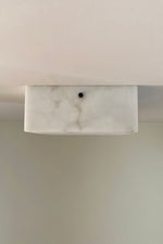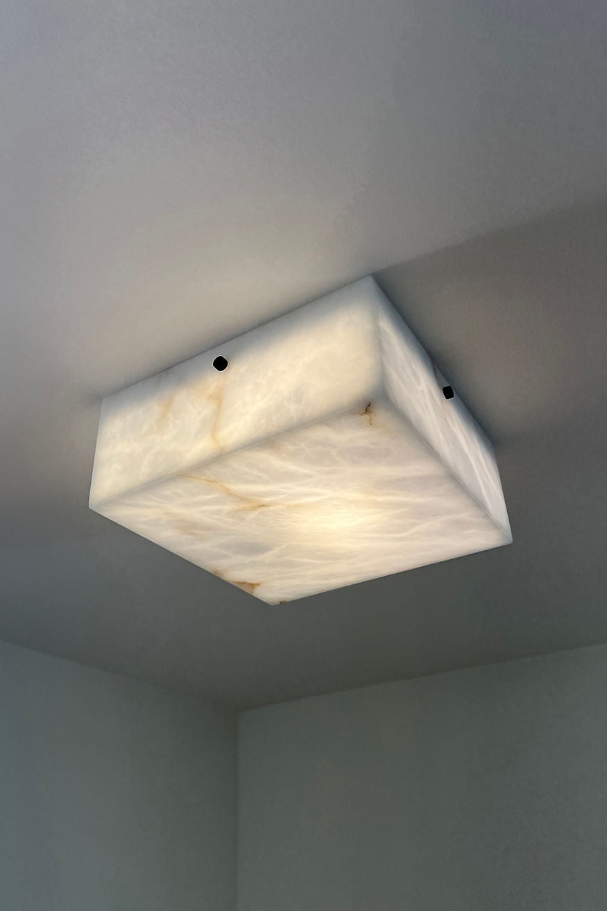 - Crafted from natural alabaster sourced from Northern Italy, the Paddy Alabaster Flush Mount blends timeless elegance with modern design. Each piece features a hand-carved alabaster square , Like marble, alabaster forms over millions of years, with its unique veining revealed through traditional carving techniques. When illuminated, the stone’s translucent quality emits a warm, ethereal glow—reminiscent of the material’s historic use in Italian artistry.