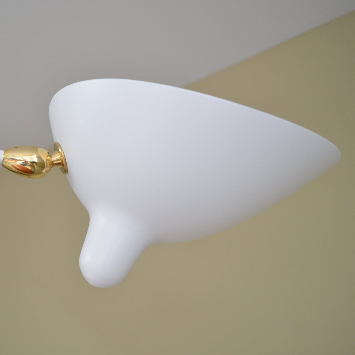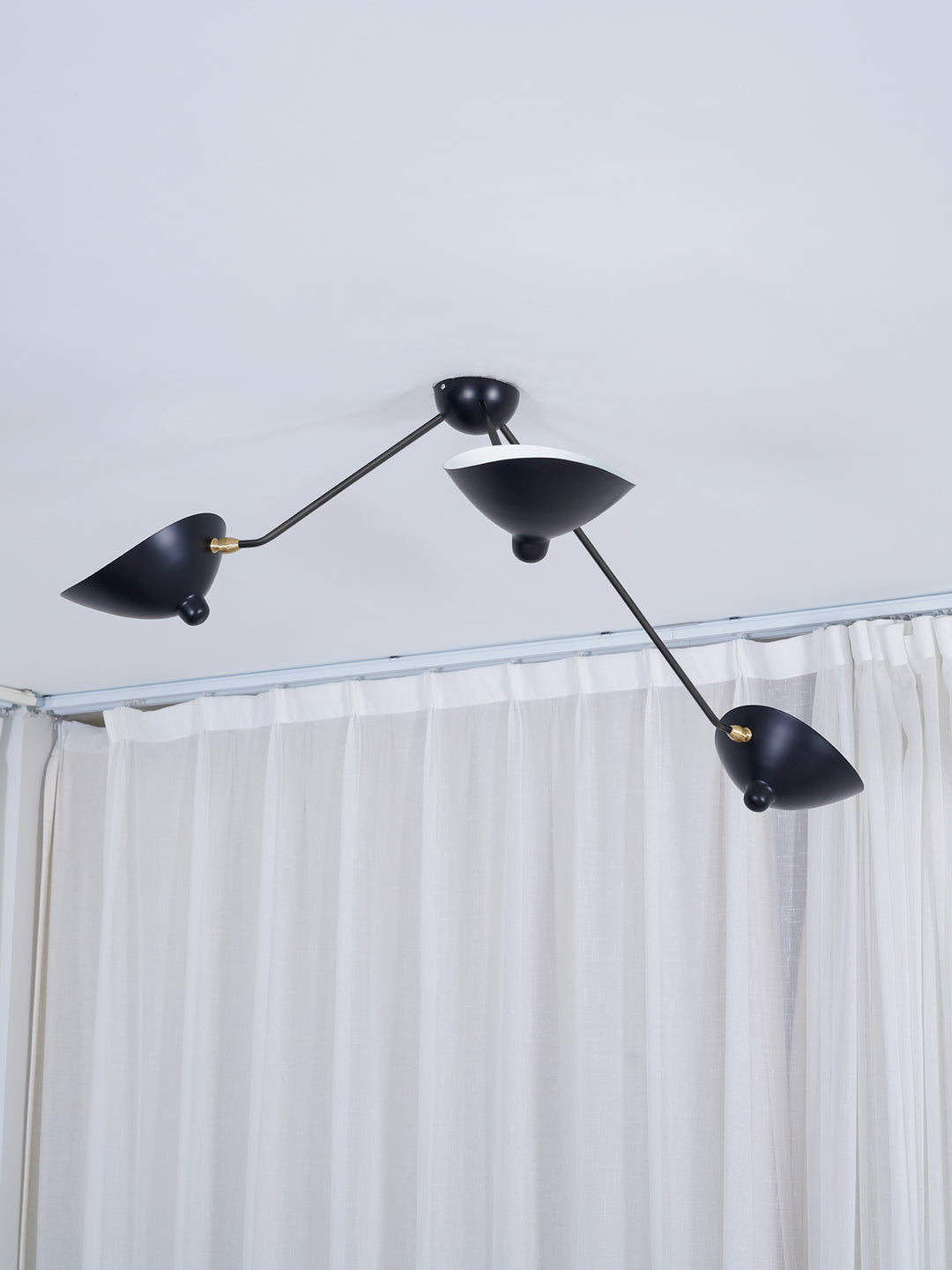 • As with all Serge Mouille creations, the Spider Ceiling Lamp is a masterpiece of balance and form. Its distinctive fixed arms, each crowned with an adjustable shade, radiate from a central canopy like a sculptor's rendering of light itself. Finished with polished brass swivels, every detail reflects the meticulous artistry and high-quality materials that define this legendary designer's work.
