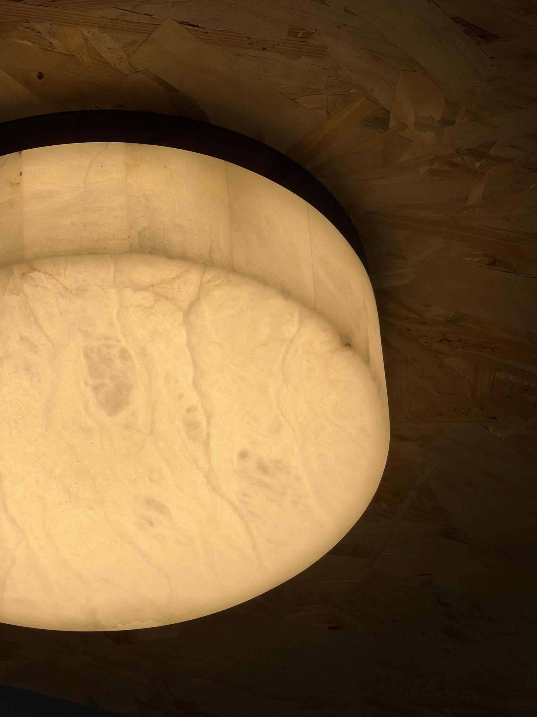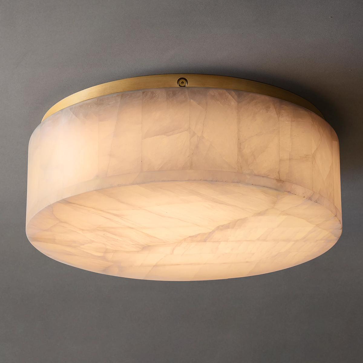 • Embrace the perfect fusion of modern architecture and natural artistry with the Torrie Flush Mount Light. This fixture proves that true drama lies in simplicity. Expertly crafted from Alabaster, a rare translucent stone, it emits a uniquely soft, warm glow that transforms any room into a serene sanctuary.