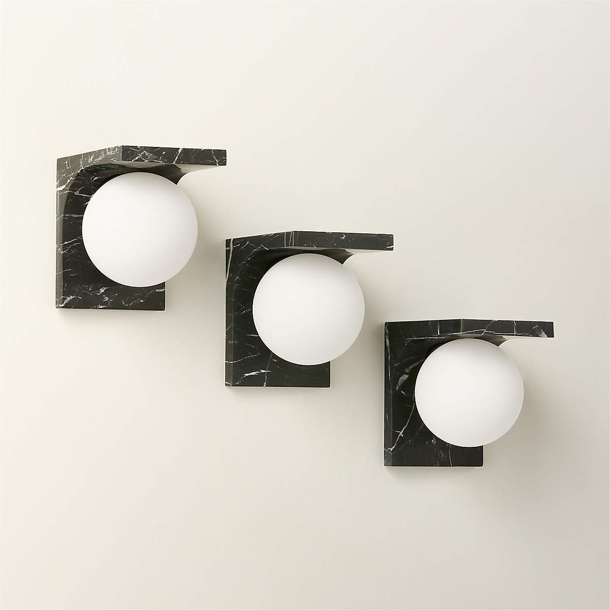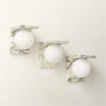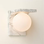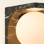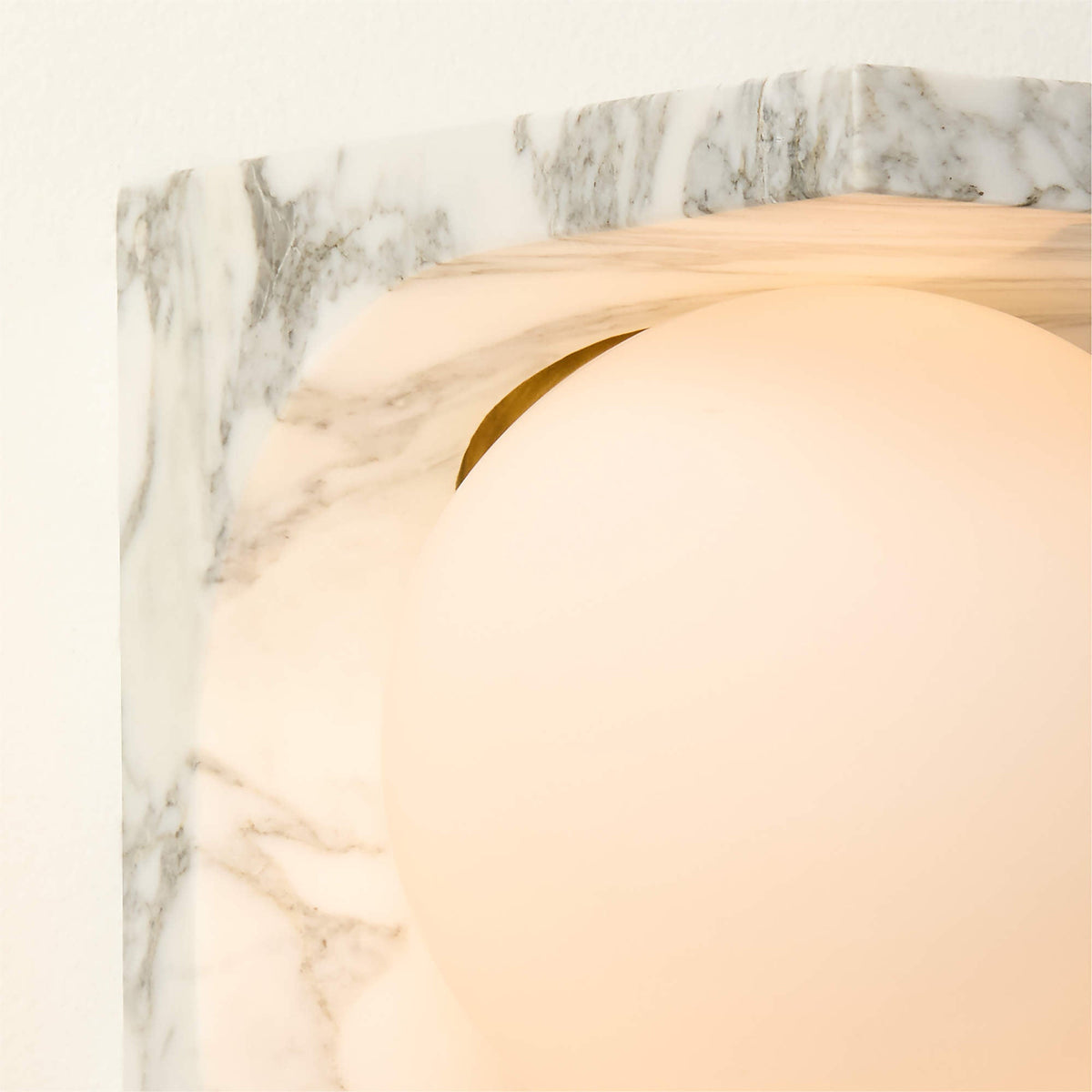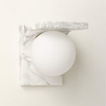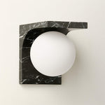 - Crafted for those who appreciate purity of form and exceptional materiality, the sconce features a solid arc of premium Arabescato marble or Nero Marquina marble. Suspended from this enduring marble arch is a soft frosted glass globe, emitting a warm, diffused glow that creates an inviting and serene atmosphere.