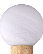 • Elevate your bathroom or vanity space with the Beatrix Beige Bath Wall Sconce, a stunning fusion of natural stone and artisanal glass. The centerpiece of this fixture is a handcrafted travertine column, its soft beige tones and delicate veining adding organic elegance. The stone extends gracefully beyond the wall plate, capping each end with textured art glass globes that emit a warm, diffused glow.