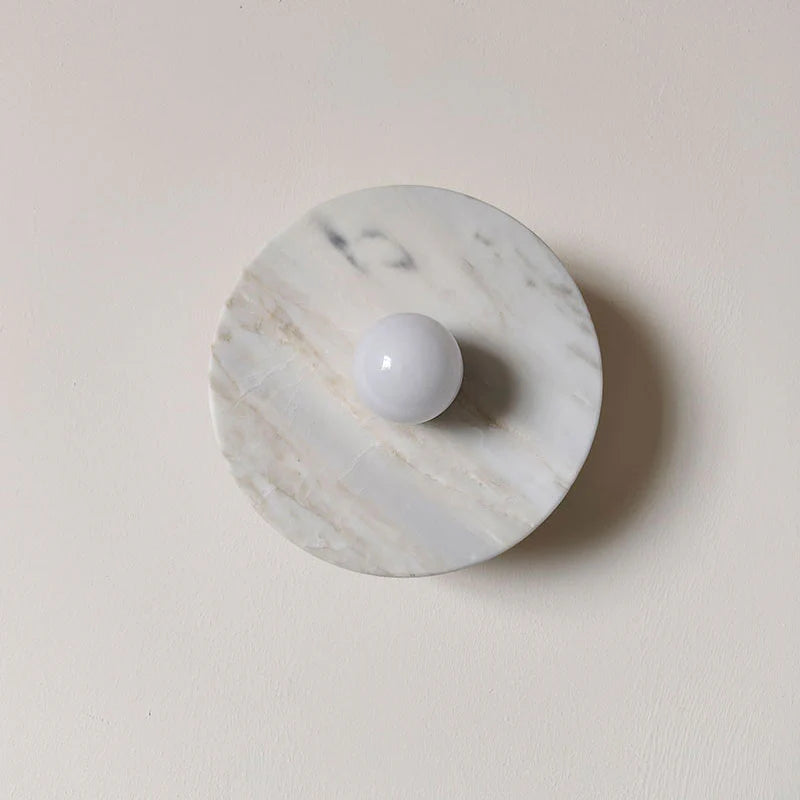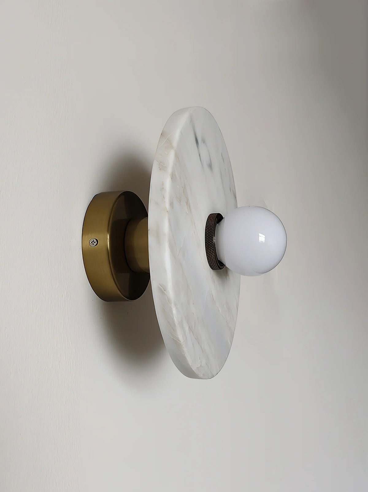 - Each piece of Borghini Marble Sconce is a unique work of art, featuring a highly dynamic surface adorned with intricate veins and brecciated clasts. The variations in pattern and color are striking, ensuring that no two sconces are alike. The palette ranges from cool pewter and deep storm-cloud greys to warm blends of taupe and ochre, all set against the classic milky-white background that is the hallmark of Tuscan mountain quarries.