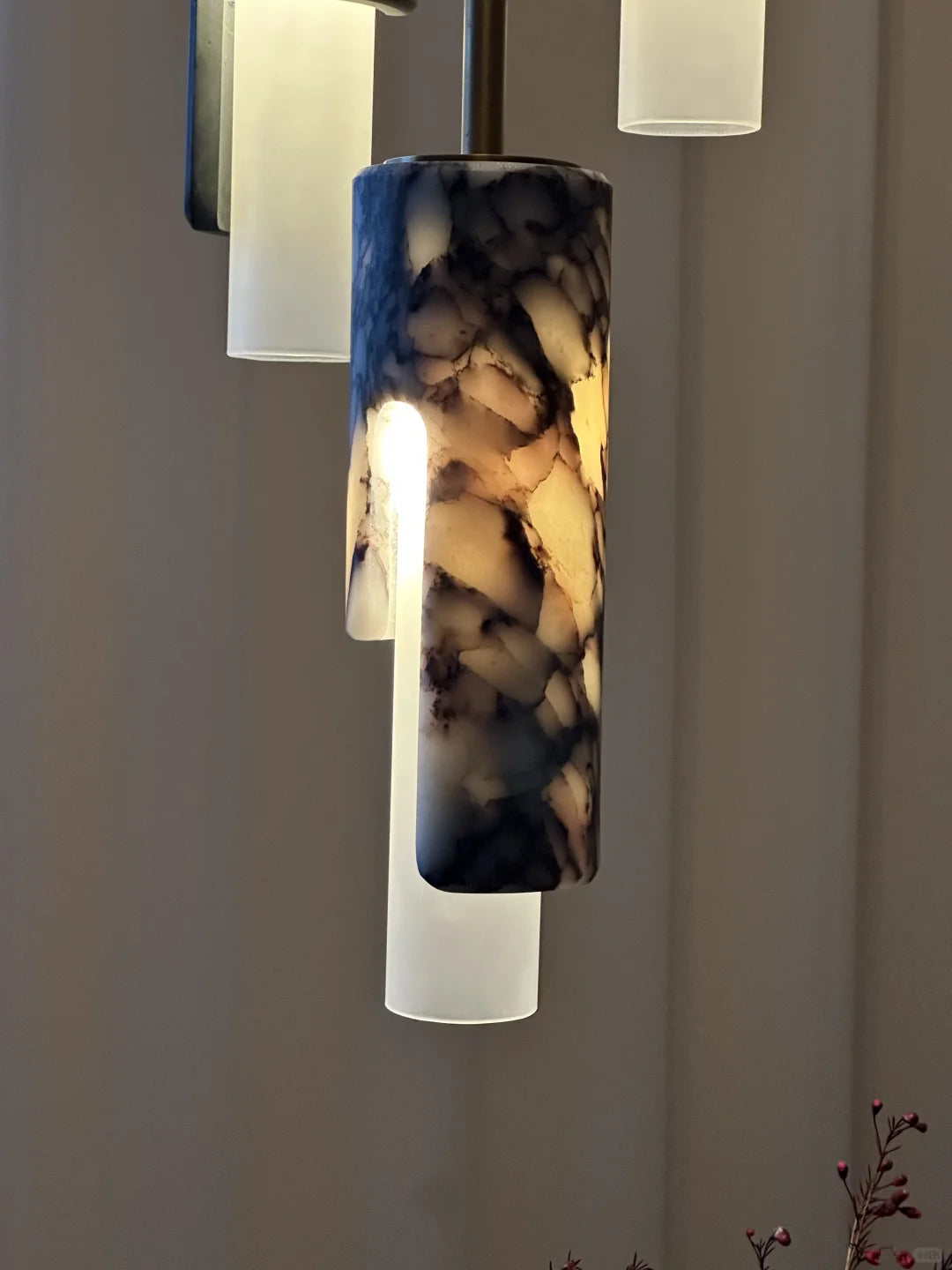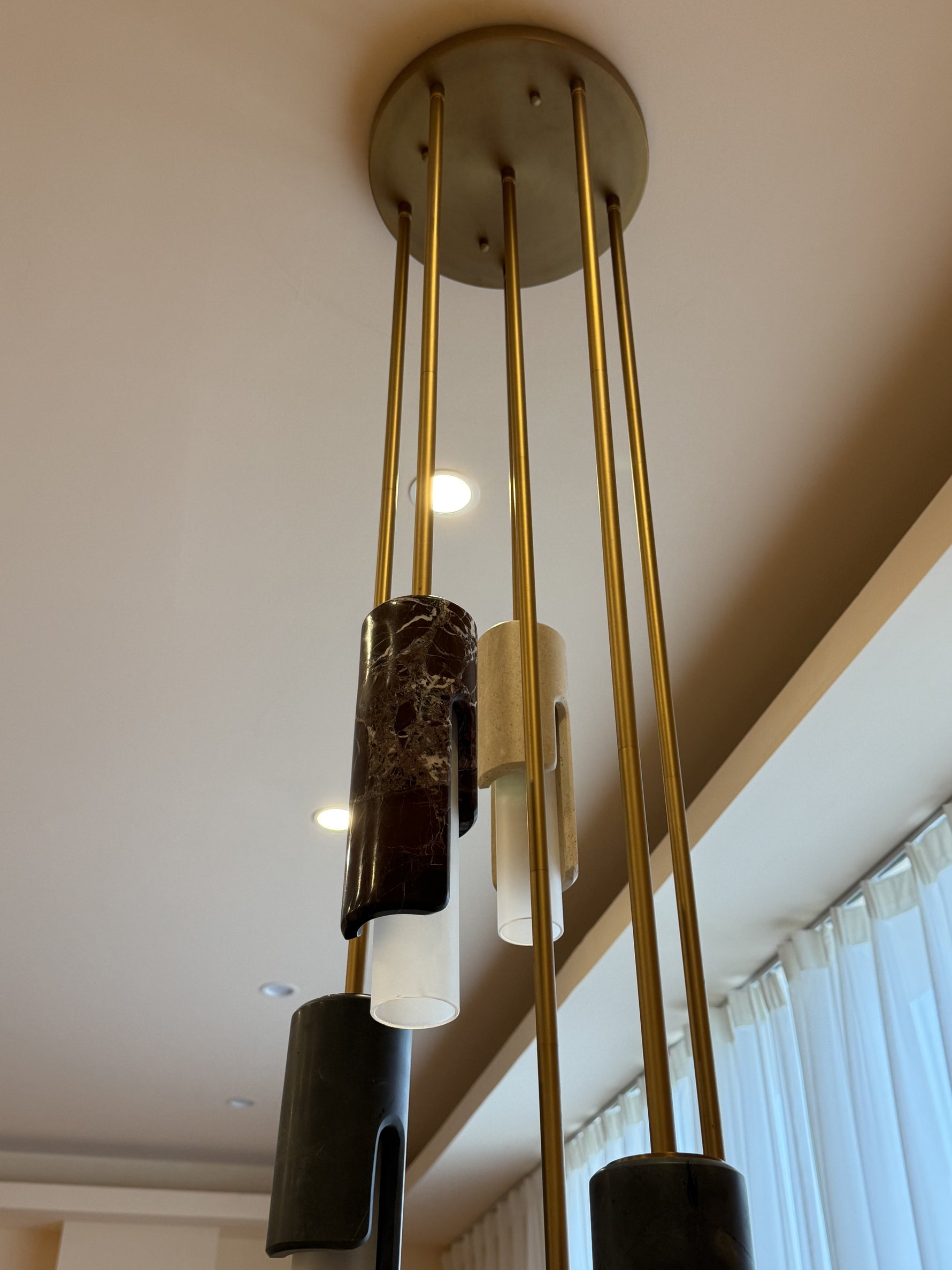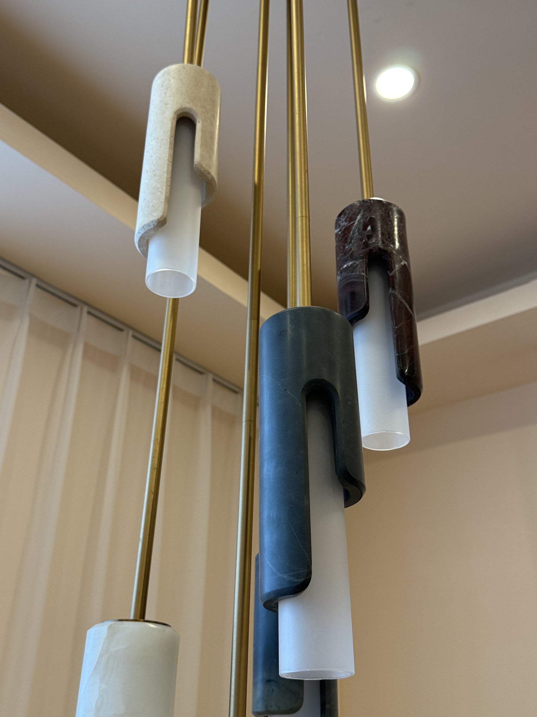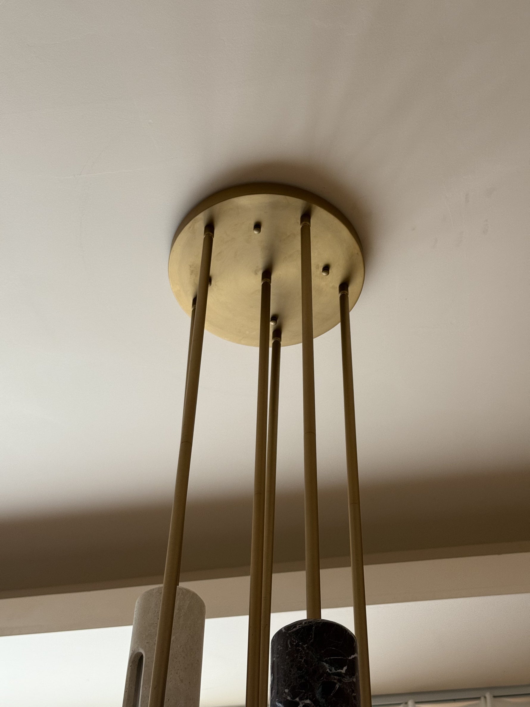 - We have combined six Dover pendant lights to create this stunning and magnificent chandelier. The six diffusers consist of one Travertine, one Rosso Levanto Marble, two Verde Guatemala Marble, one Alabaster, and one Calacatta Viola Marble. You can also customize the number of diffusers in different materials—please contact us for a quote.