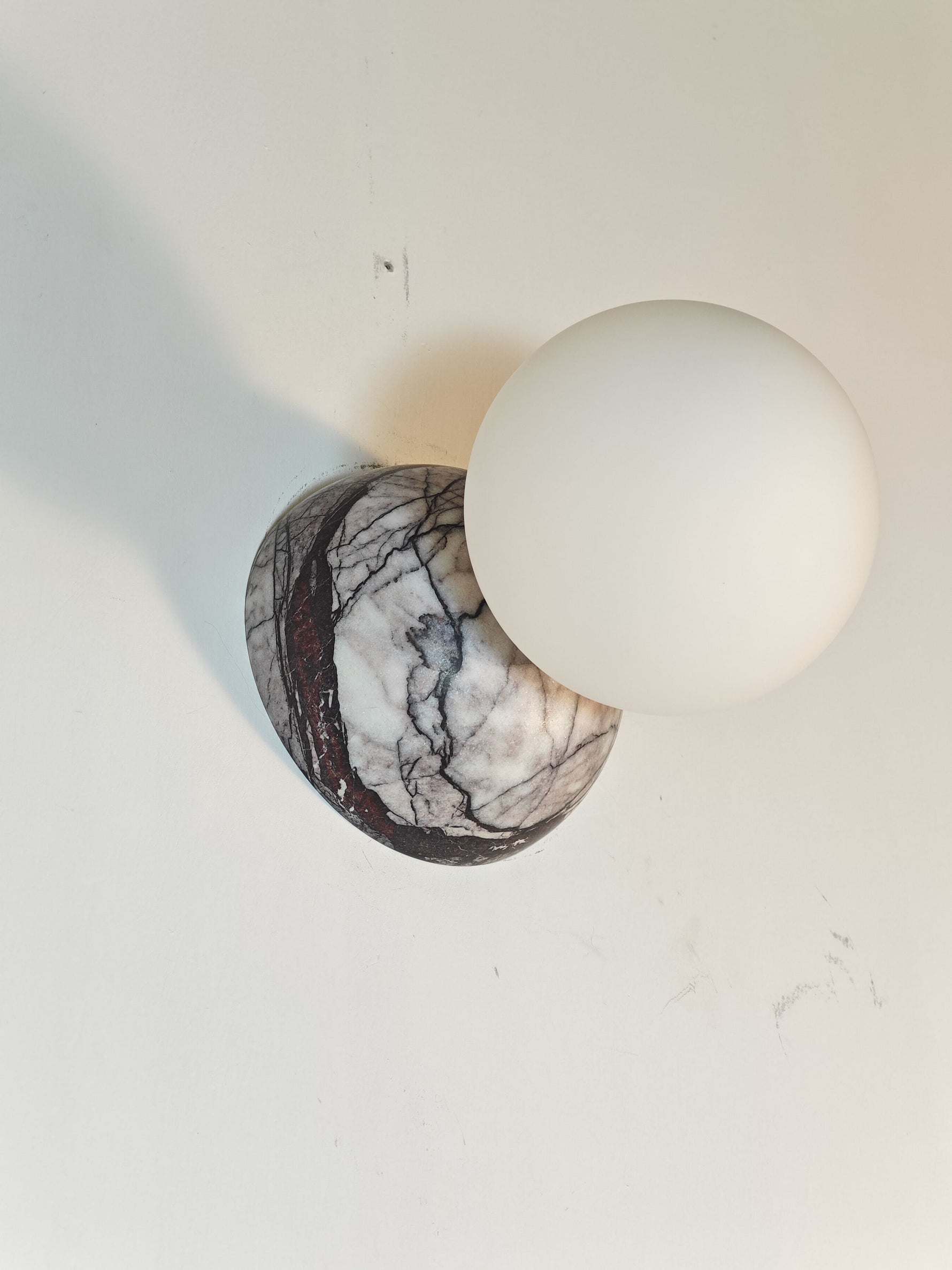 • The Eklipso Plum Blossom Sconce transforms light into a dramatic celestial event. This fixture is defined by two perfectly aligned, overlapping spherical shades that shift visually as you move past them, beautifully mimicking the captivating motion of a moon eclipse.