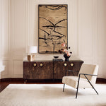- Crowning the organic base is a crisp, cylindrical linen drum shade. This choice of material provides a soft, warm glow that diffuses light gently, reducing glare and creating an inviting atmosphere. The clean lines of the shade offer a modern counterpoint to the stone's ancient texture, resulting in a design that feels both timeless and contemporary.