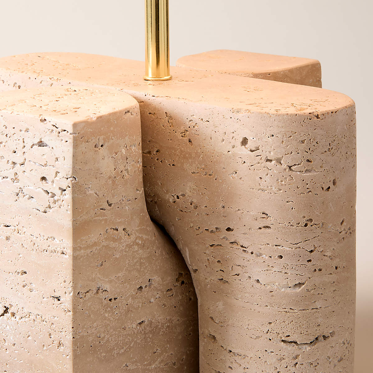 - Introducing the Peniche Travertine Table Lamp, where art meets illumination. Carved from a single, solid block of travertine, no two bases are exactly alike. The stone's natural pits, veins, and textures create a captivating play of light and shadow, making each lamp a unique work of art. Its substantial, elemental feel brings grounded, earthy elegance to your space.