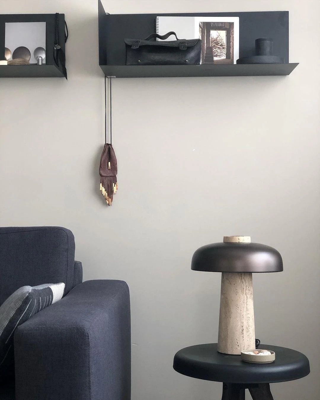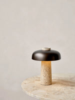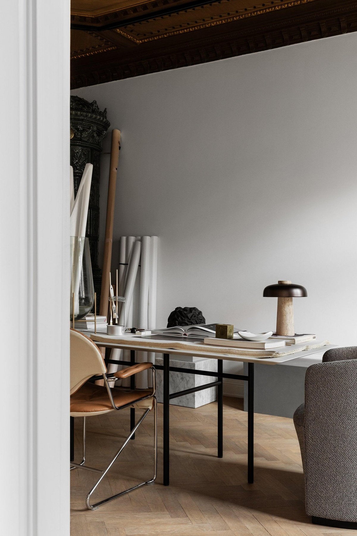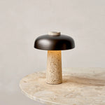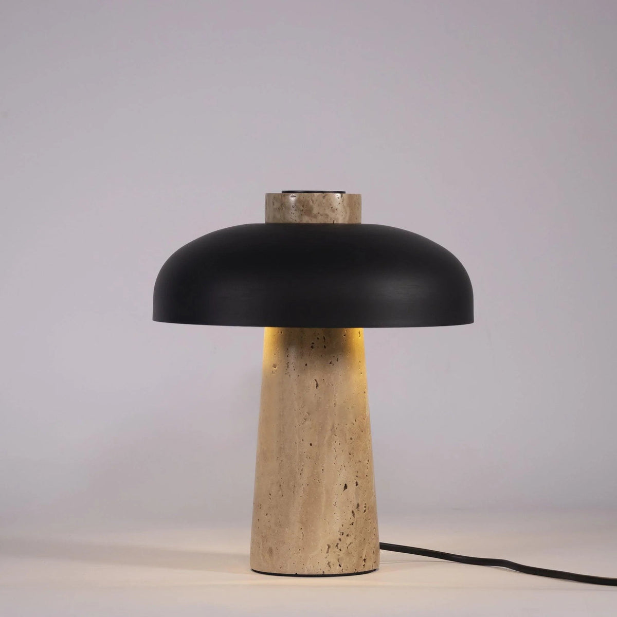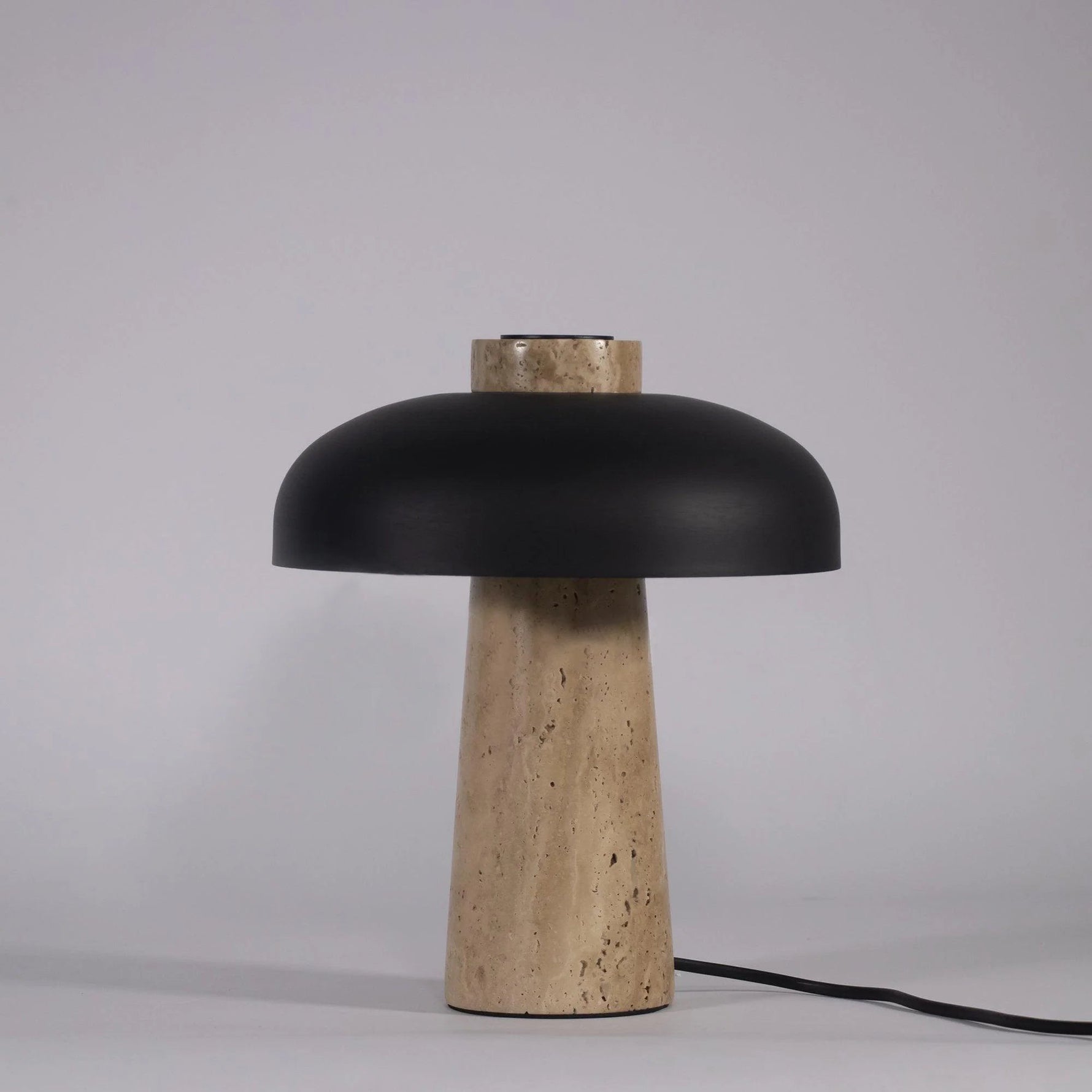 - Danish designer Aleksandar Lazic's Reverse Table Lamp is a captivating fusion of form and function, inspired by mid-century Italian design. Crafted from raw travertine and curved, bronzed aluminum, this lamp offers a unique and sculptural expression that effortlessly complements any interior.