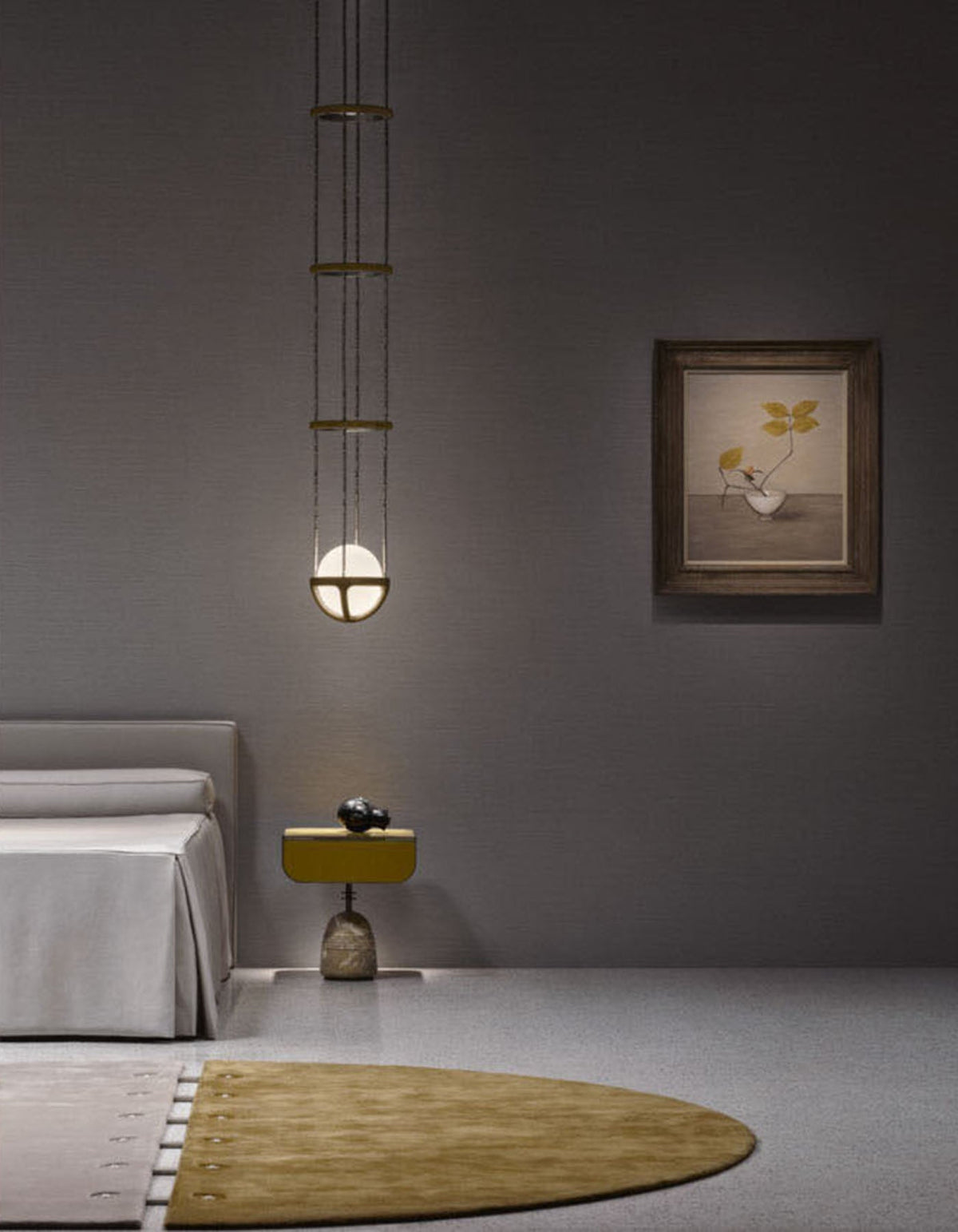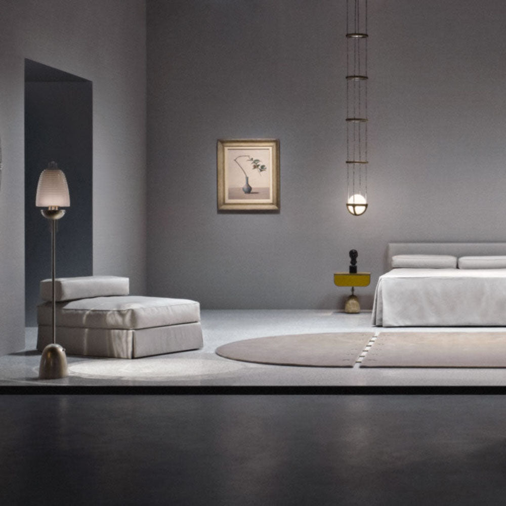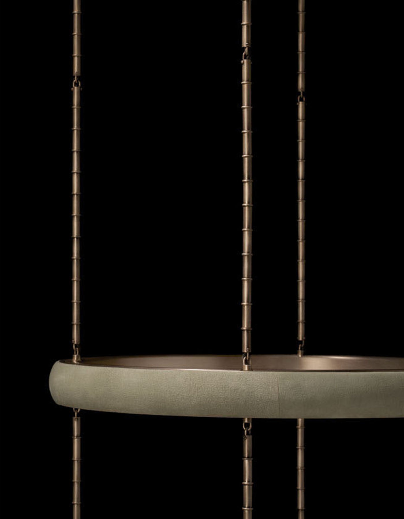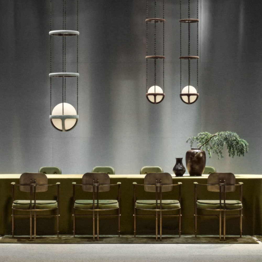 - Crafted with an innovative suspension system, the Reprise Pendant Lamp is connected by slender, almost invisible components. This thoughtful design gives the fixture a light and agile appearance, as if it's floating effortlessly in your space.