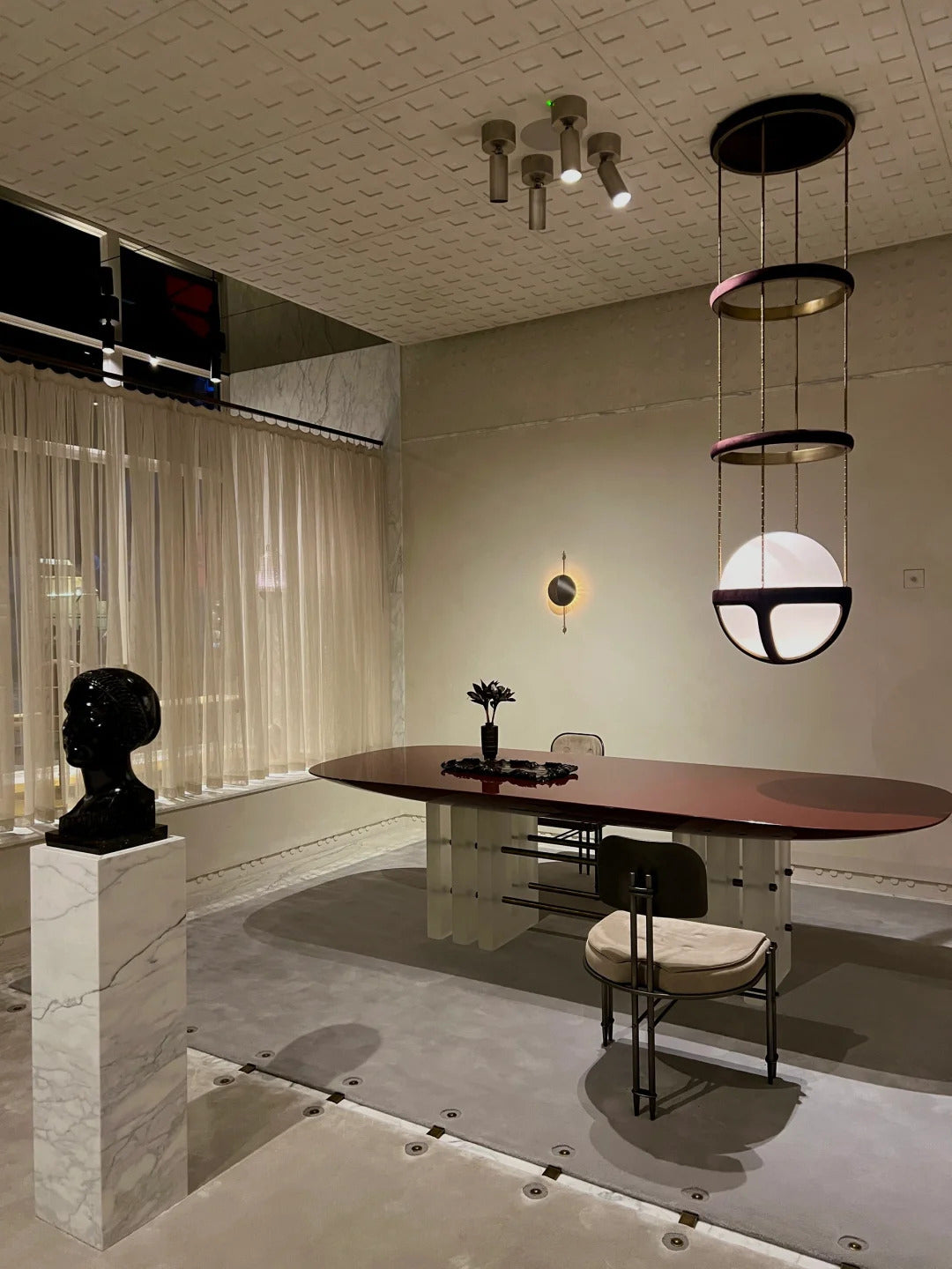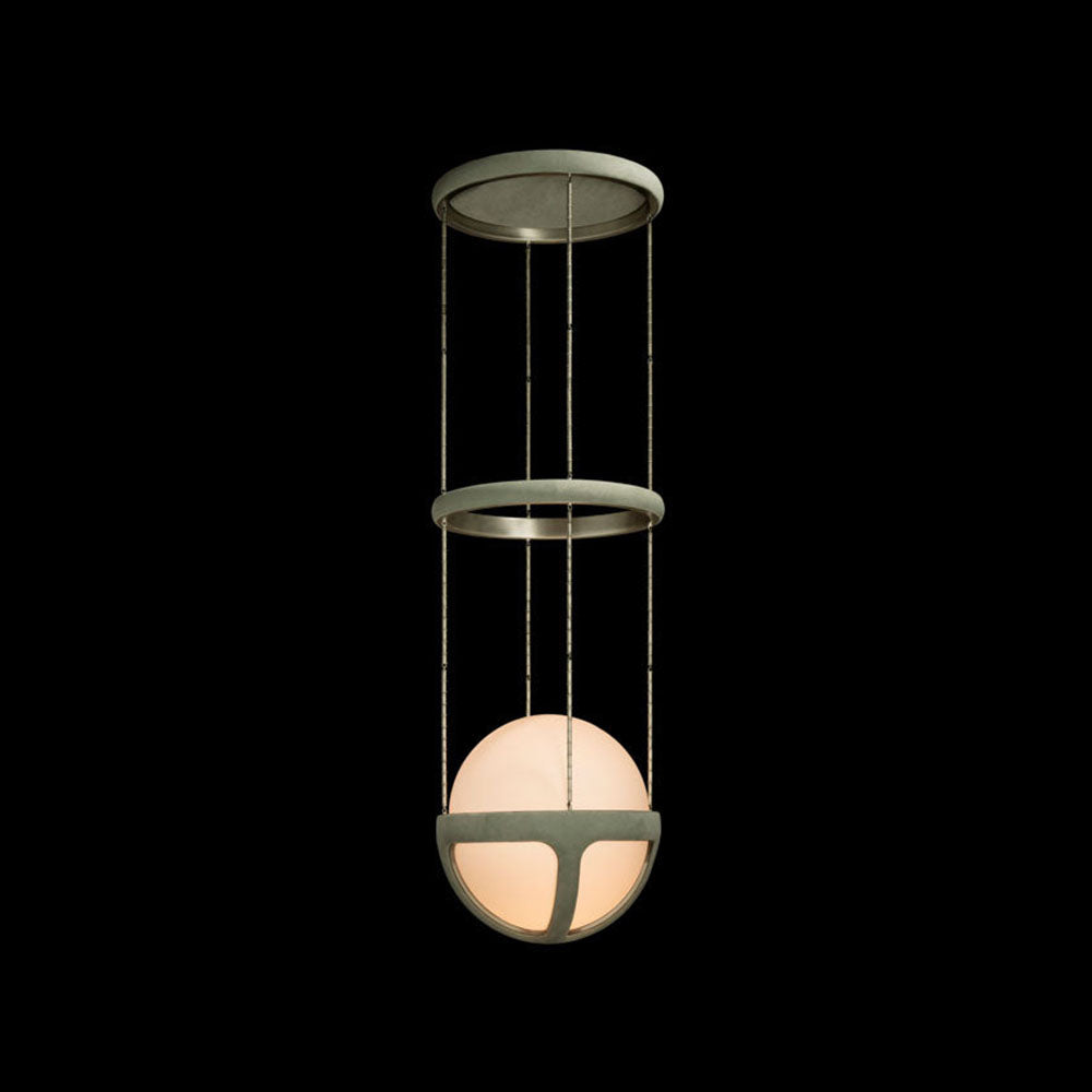 - Elevate your space with the Reprise Pendant Lamp, a lighting fixture where modern artistry meets warm, ambient illumination. This lamp redefines elegance with its captivating multi-layered ring structure, which gracefully encircles a central spherical body. The result is a stunning, clean-lined silhouette that offers visual interest from every angle.