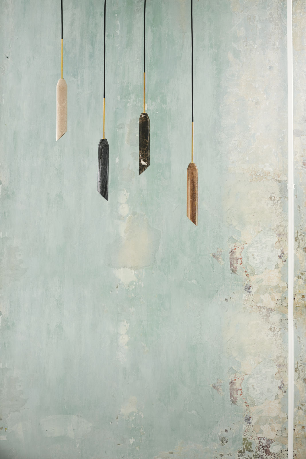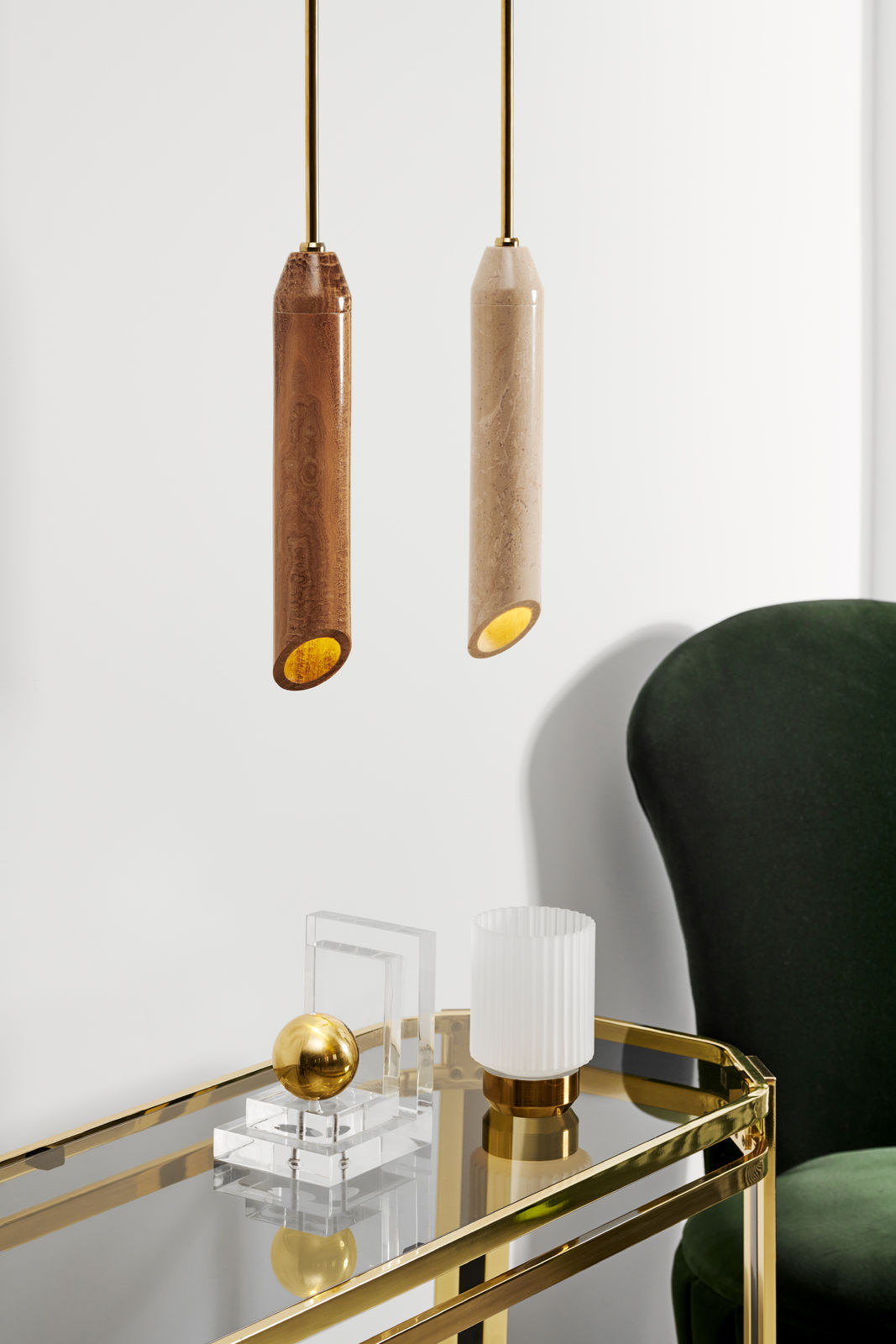 - Elevate your space with the Semi Cone Pendant Lamp, a stunning fusion of natural elegance and modern functionality. Crafted from smooth, polished marble, each lamp features a one-of-a-kind veining pattern, ensuring your piece is as unique as the stone itself. Suspended by a sleek gold-plated iron structure, Semi Cone Pendant Lamp adds a touch of refined luxury to any room.