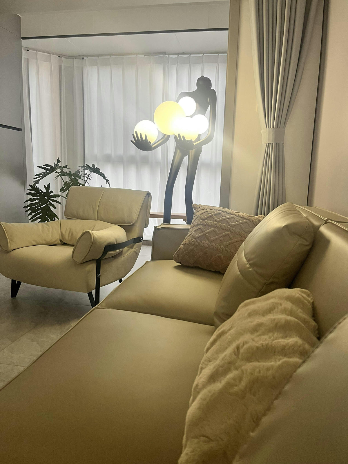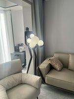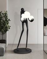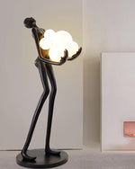 - Introducing the Sassoon Sculpture Floor Lamp, a captivating and contemporary piece that adds a touch of modern elegance to any space. This unique lamp features a slender, minimalist figure holding a delicate pile of white glass balls, creating a mesmerizing interplay of light and shadow. The sleek design and translucent glass balls cast a soft, diffused glow, providing a warm and inviting atmosphere.