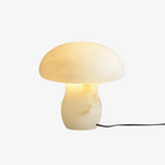 - Introducing the Asha Table Lamp, a stunning fusion of timeless elegance and modern charm. Handcrafted from premium alabaster, this exquisite mushroom-shaped lamp brings a touch of sophistication to any space. Its delicate, organic design diffuses a warm, inviting glow, creating a cozy ambiance in bedrooms, living rooms, or offices.