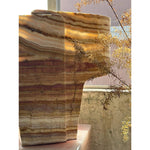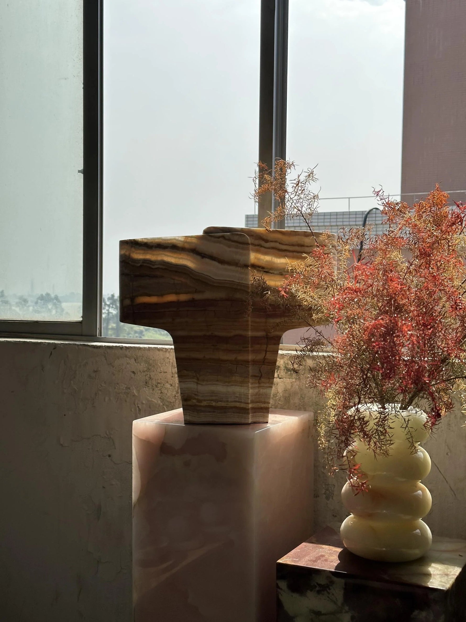• Illuminate your space with the timeless elegance of the Brown Fantasy Onyx Table Lamp. Crafted from natural onyx stone, this exquisite lamp showcases a stunning tan background, accentuated by intricate diagonal veining in a harmonious blend of ivory, cream, hazelnut, and rich brown tones that transition to nearly black. Each piece is unique, highlighting the natural beauty and organic patterns of the stone.