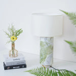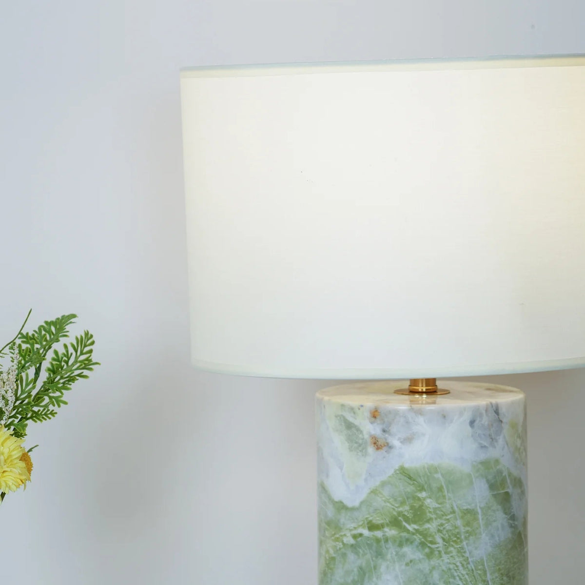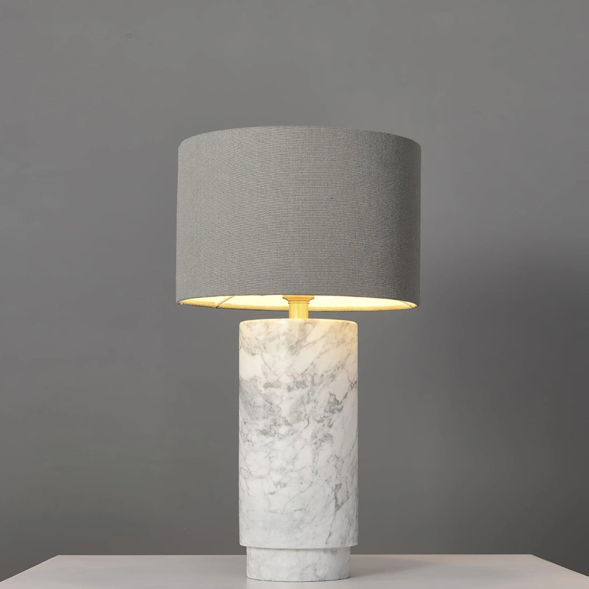- Crafted with a solid, single-piece marble base, this elegant table lamp brings timeless beauty to your space. The natural stone, formed over millions of years, adds a touch of Earth’s history to your decor. Paired with a luxurious fabric lampshade and supported by polished brass accents, this lamp blends organic texture with refined craftsmanship.