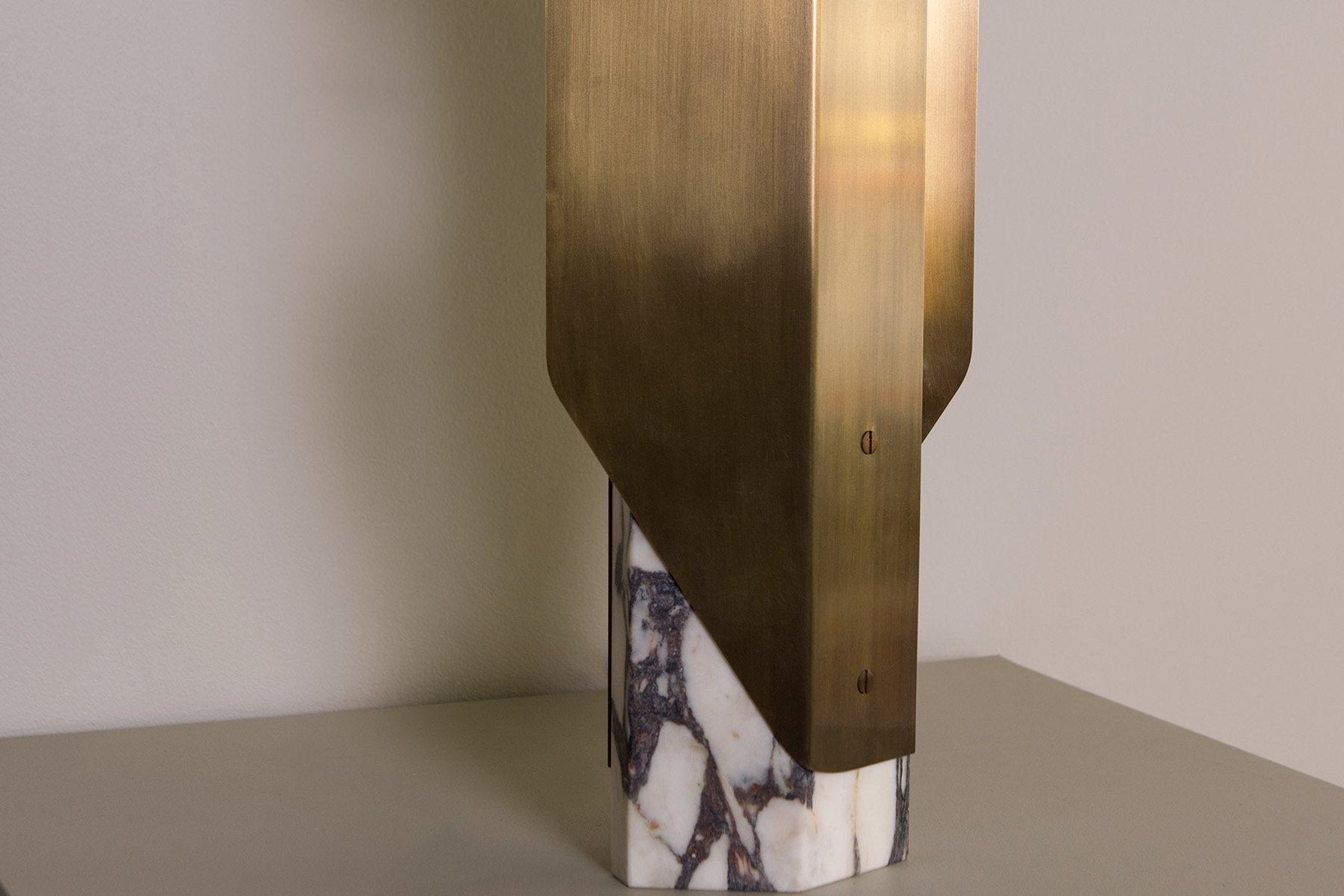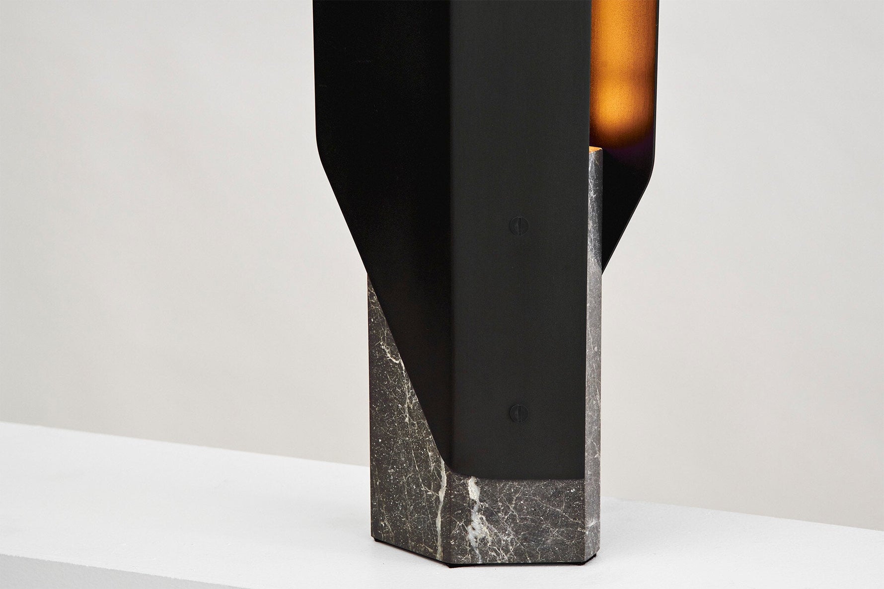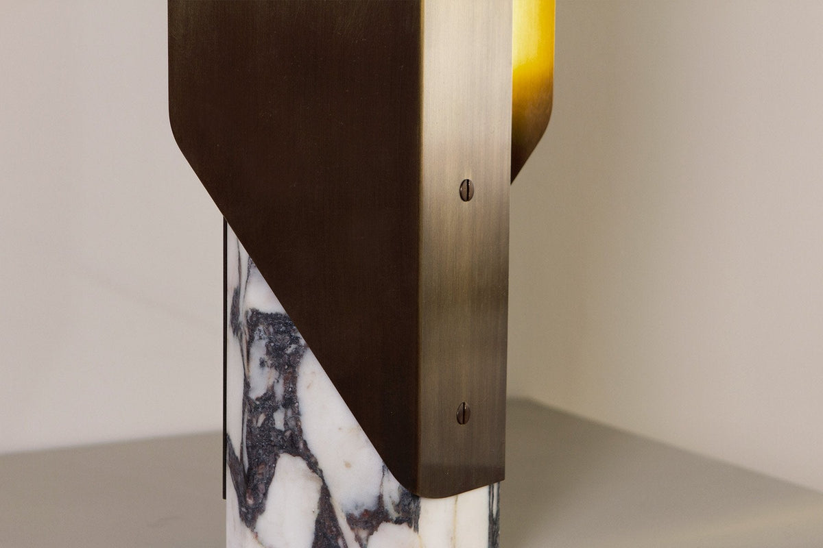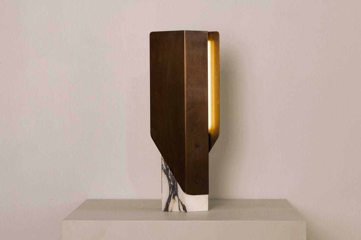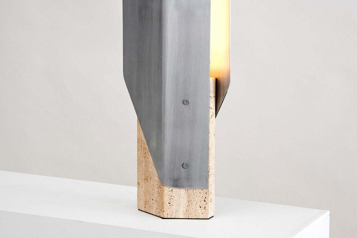 - To anchor its futuristic form in elemental beauty, we offer the Fold Lamp in four distinct editions. Each pairs a machined metal structure with a unique, solid natural stone base. This union of industrial material and raw, terrestrial stone ensures your lamp is a one-of-a-kind focal point.