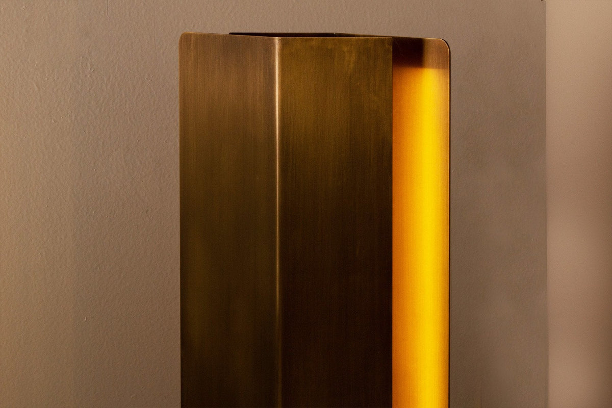 - Crafted for those who find beauty in the intersection of the brutal and the refined, its design features precisely folded metal fins. This isn't just for show—this ingenious geometry works to capture and reflect a soft, ambient glow both forward and back, casting a cinematic atmosphere across your space. The light is layered, intimate, and perfect for creating a contemplative or sophisticated ambiance.