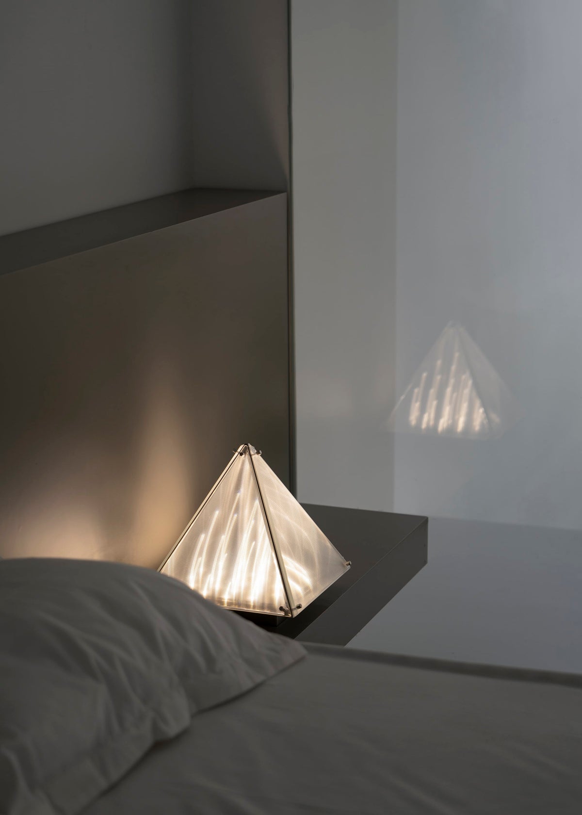 - Inspired by I.M. Pei's iconic Louvre Pyramid, the Fragment #04 Table Lamp is a striking fusion of modern innovation and timeless elegance. Just as the Louvre Pyramid challenged traditional aesthetics to become a celebrated masterpiece, this lamp redefines lighting design by seamlessly balancing the avant-garde with the classical.