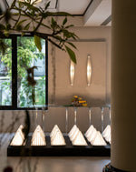 - Crafted with precision, the lamp features a sleek metal structure encased in delicate glass, creating a dynamic interplay of light and shadow. The light travels through the intricate design, sometimes reflecting off the walls, other times breaking free, creating an illusion of infinite space within a compact form.