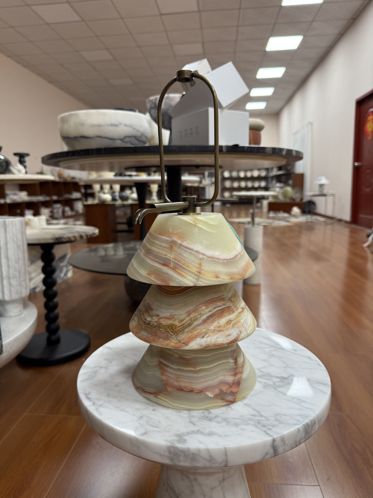 - Illuminate your space with the Jupiter Onyx Table Lamp, a stunning blend of organic textures and refined craftsmanship. Featuring a hand-turned onyx stone base, each lamp showcases unique natural veining, adding a touch of earthy elegance to any room. The soft, diffused glow of the linen shade creates a warm and inviting ambiance, perfect for bedrooms, living rooms, or offices. Accented with rich walnut details, this lamp seamlessly combines modern design with timeless materials.