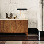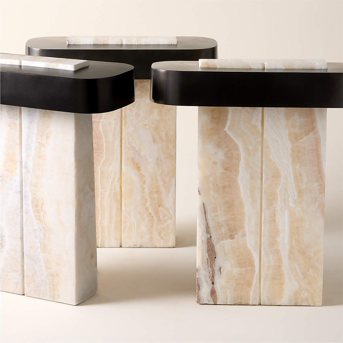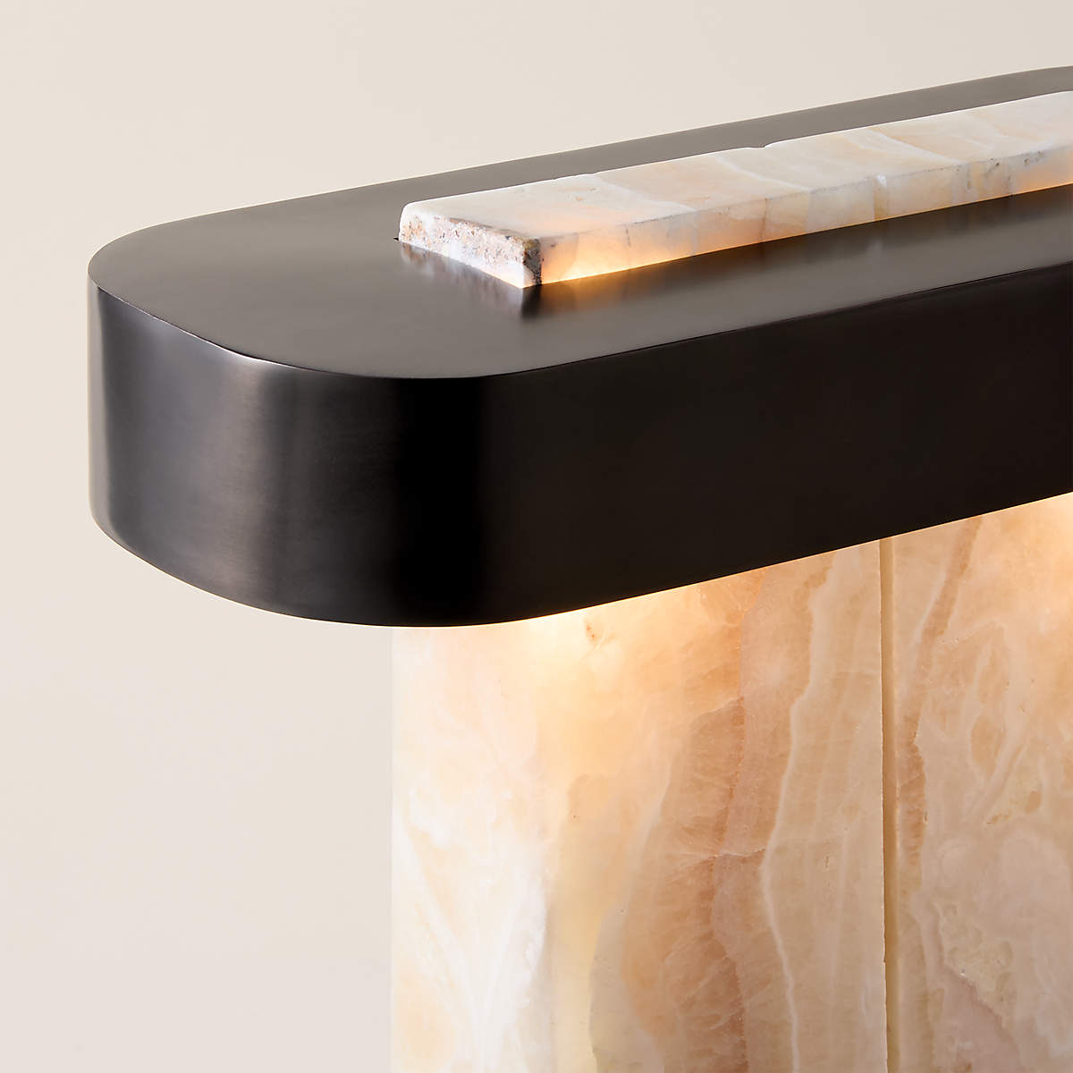 - Each Lastra Cream Onyx Table Lamp is a unique work of art, meticulously hand-carved from a single, solid block of cream onyx. No two pieces are exactly alike, ensuring your lamp possesses its own distinct veining and character. The cool, smooth touch of the stone is complemented by the minimalist structure of the matte black metal frame, creating a tactile and visually arresting object.
