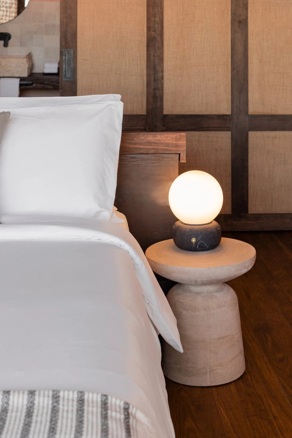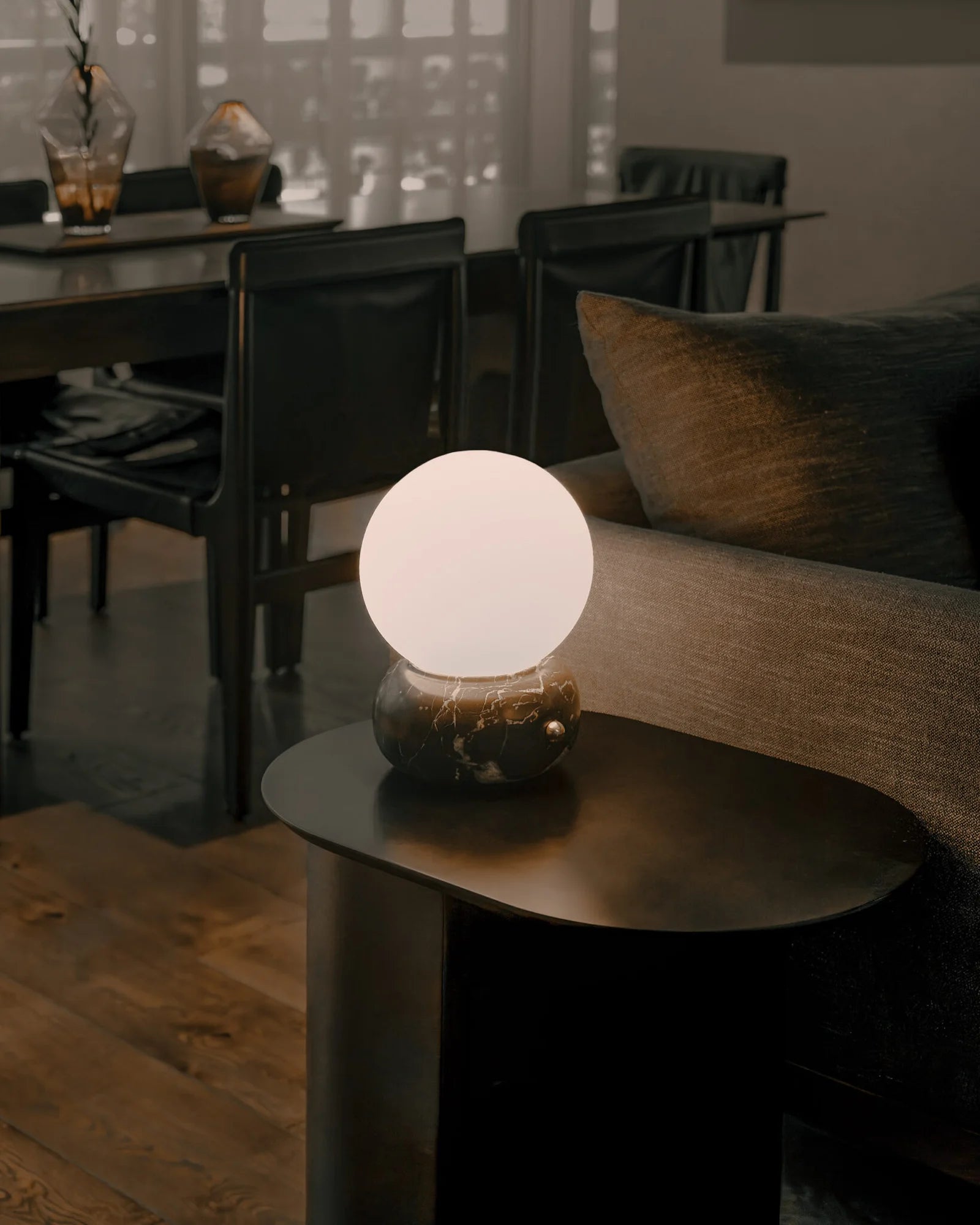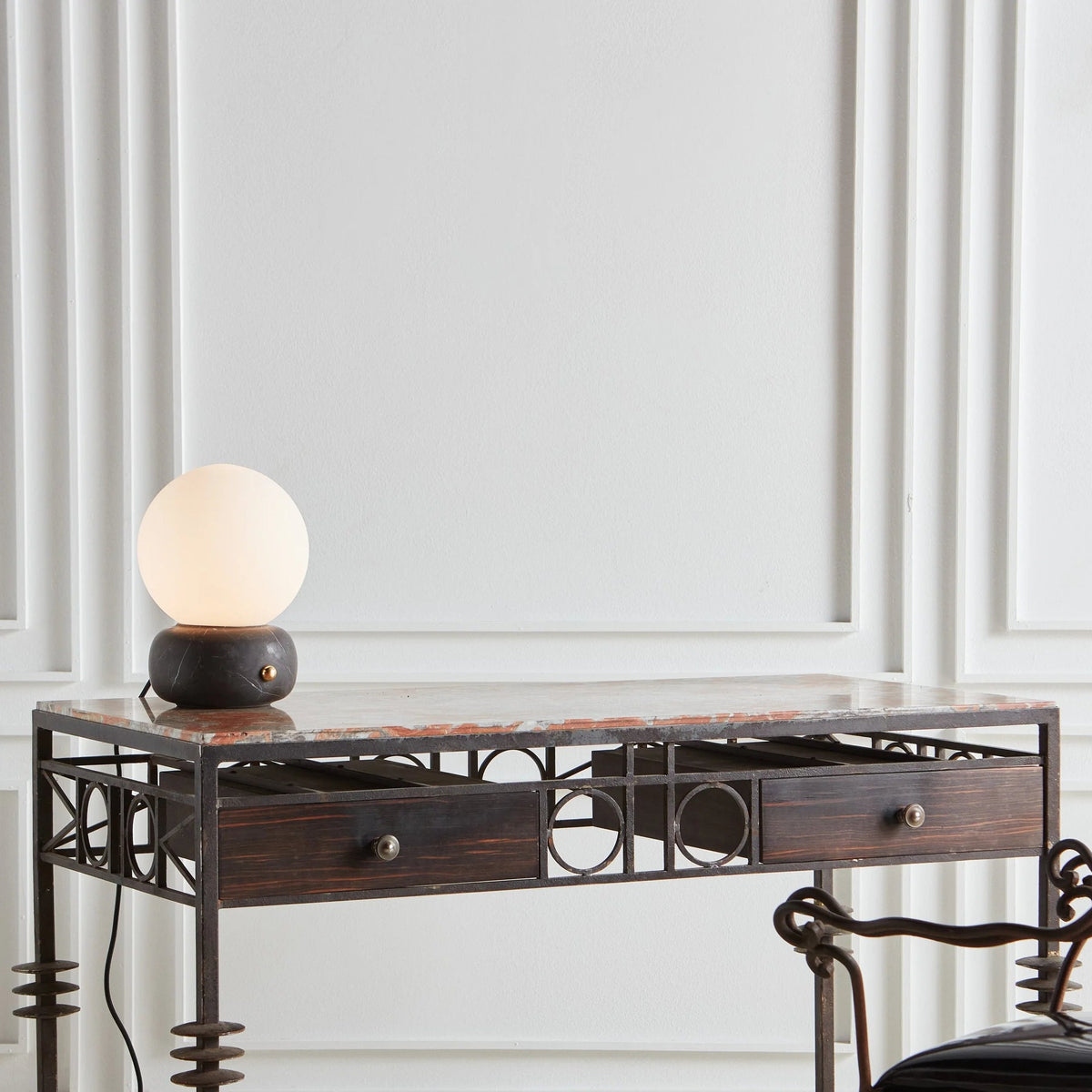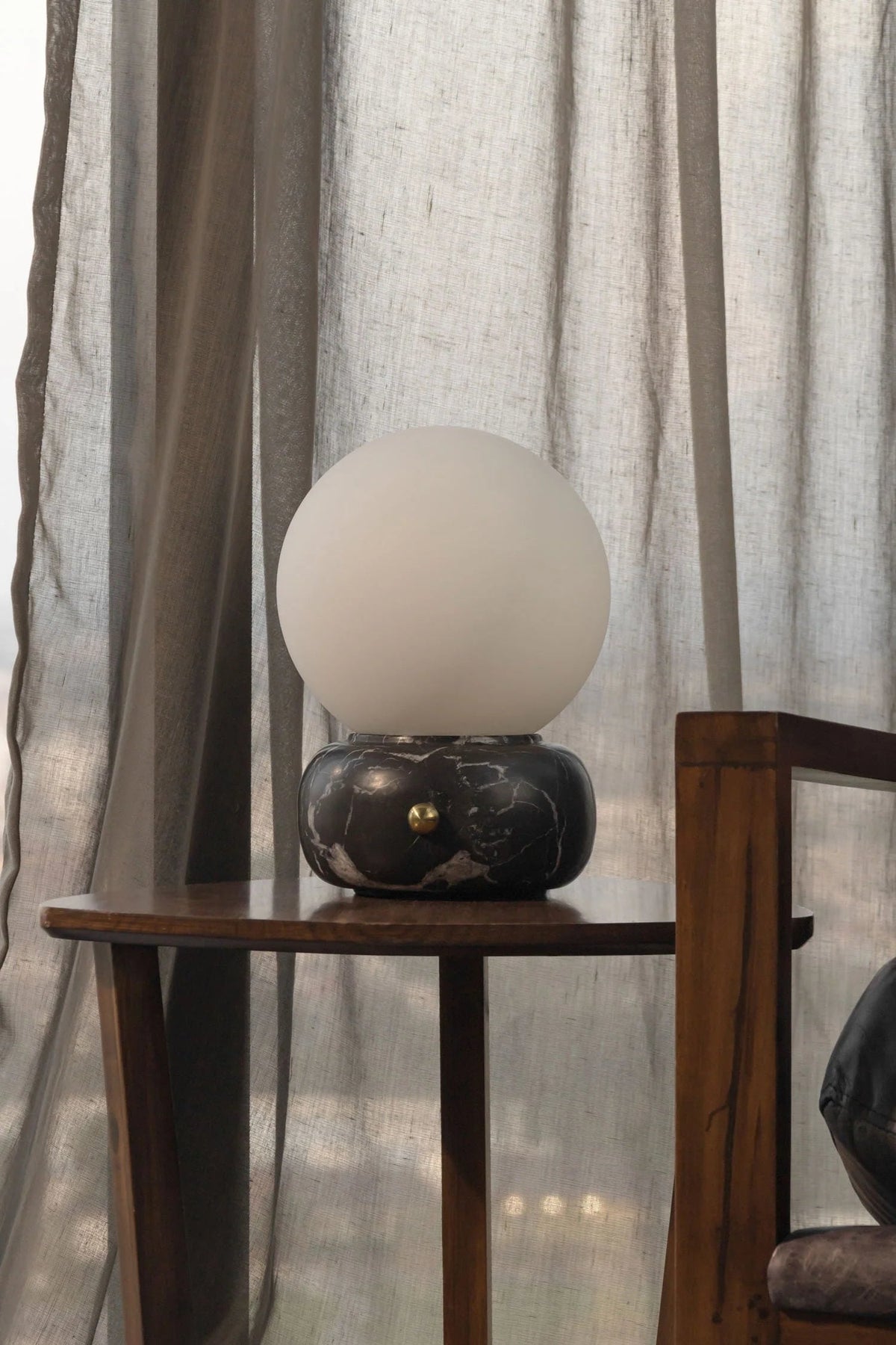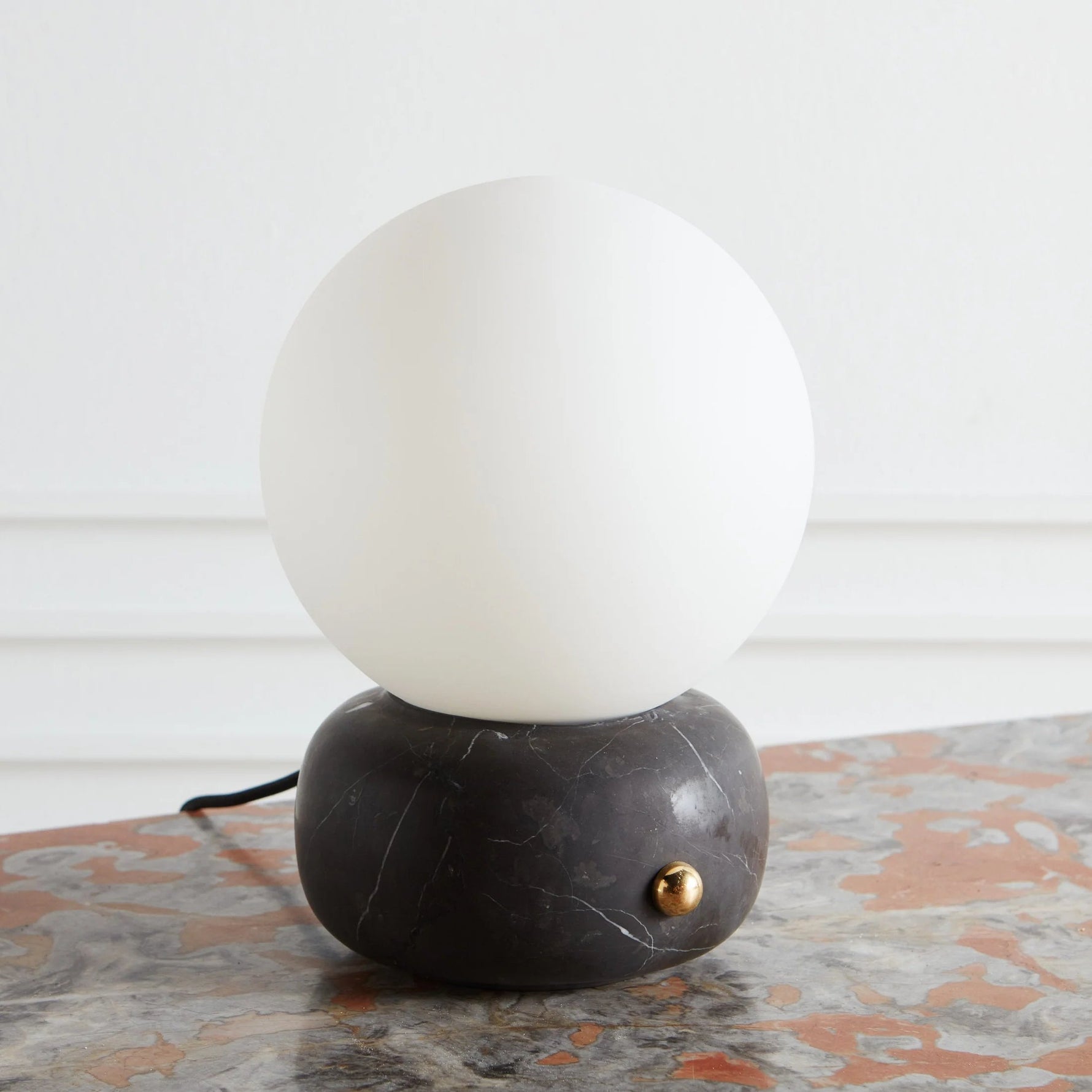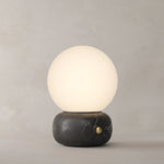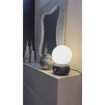• A sculptural blend of modern elegance and artisanal craftsmanship, the Naga Table Lamp captivates with its harmonious balance of light and stone. A smooth, spherical diffuser in luminous opaline glass rests gracefully atop a hand-carved marble base, available in classic white or bold black.