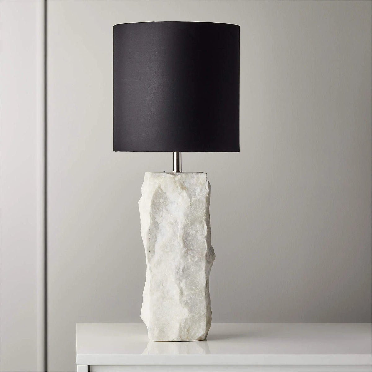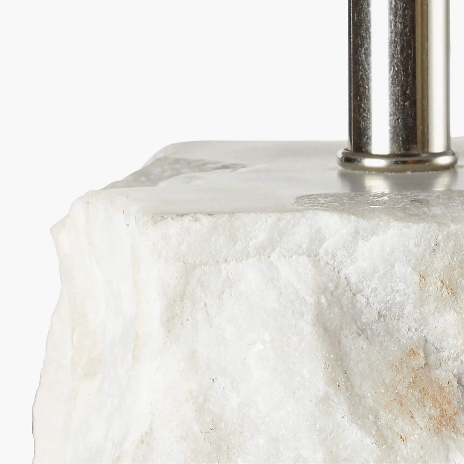 • An organic modern table lamp that brings a touch of natural elegance to any space. The sleek chrome stem and soft round cotton shade offer understated sophistication, while the raw, unrefined marble base makes a striking statement. Each piece showcases the unique veining and texture of natural stone, blending contemporary design with earthy charm. Perfect for adding warmth and character to your home, this lamp effortlessly merges modern simplicity with organic beauty.