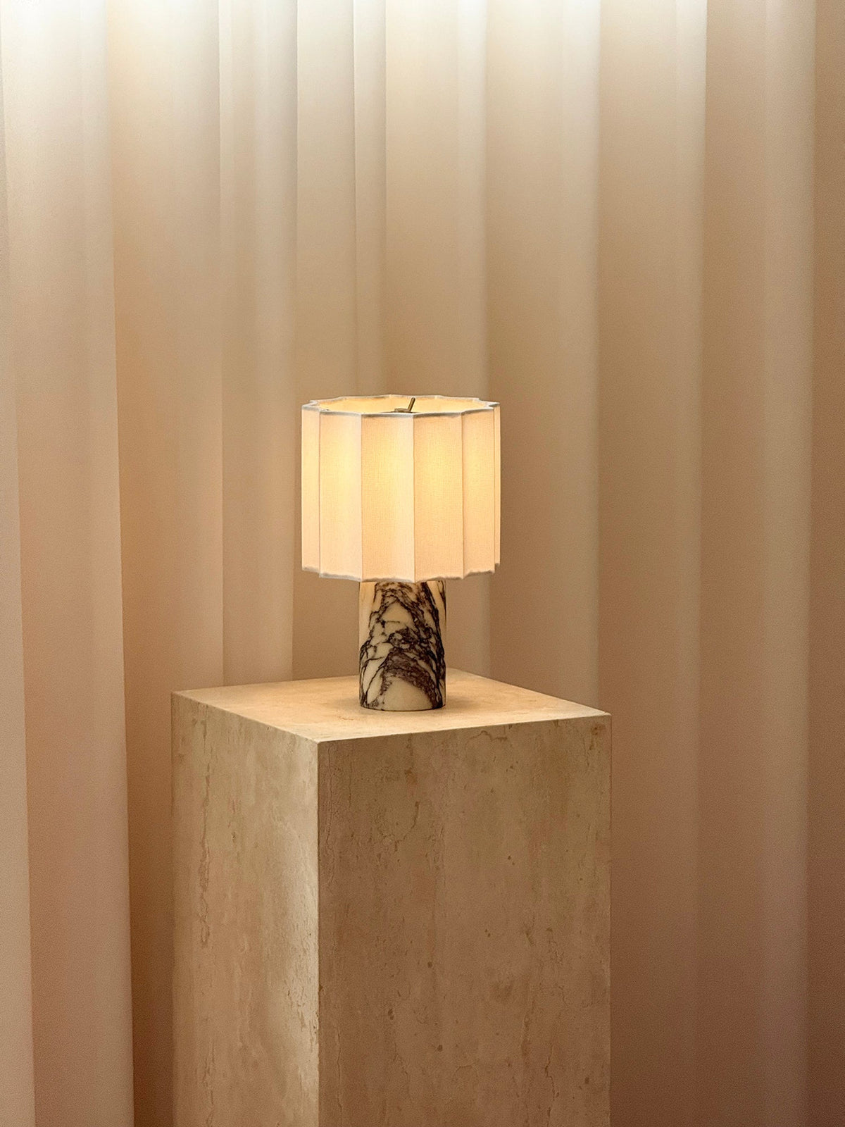 • Elevate your space with the Rowels Table Lamp, a stunning fusion of luxury and natural artistry. The lamp’s body is sculpted from exquisite Bulgari marble, renowned for its rich, intricate veining that resembles an abstract masterpiece painted by nature itself. Each unique pattern ensures no two lamps are alike, adding a touch of sophistication and exclusivity to your decor.