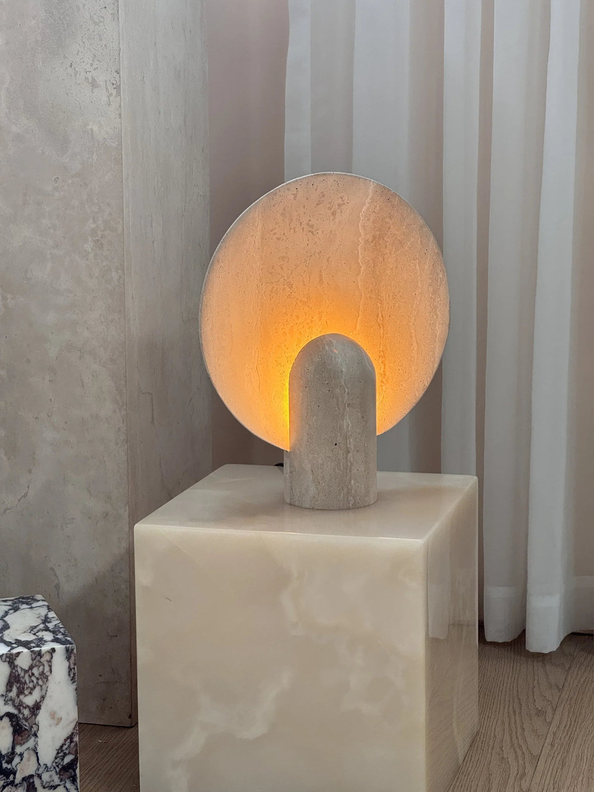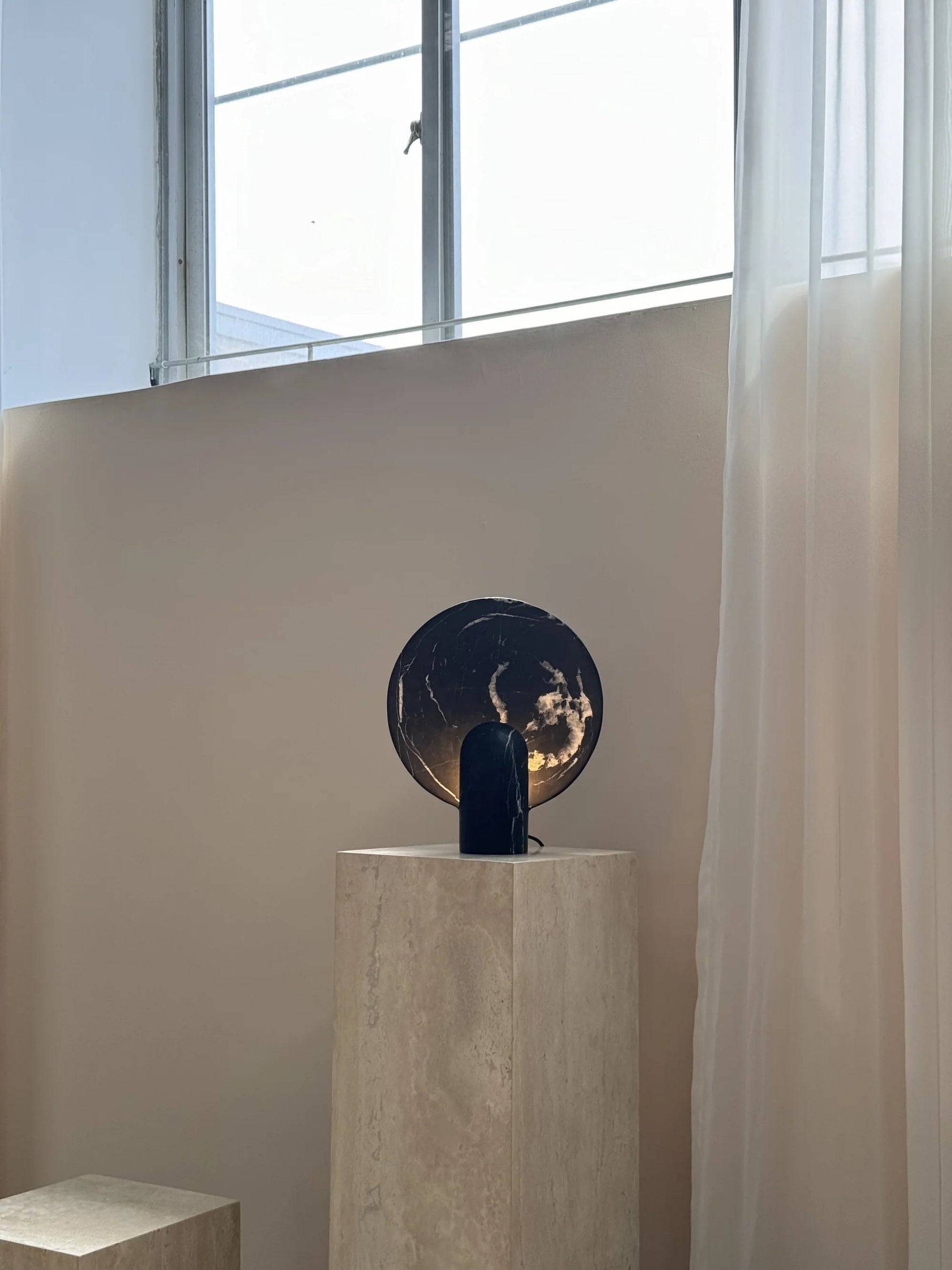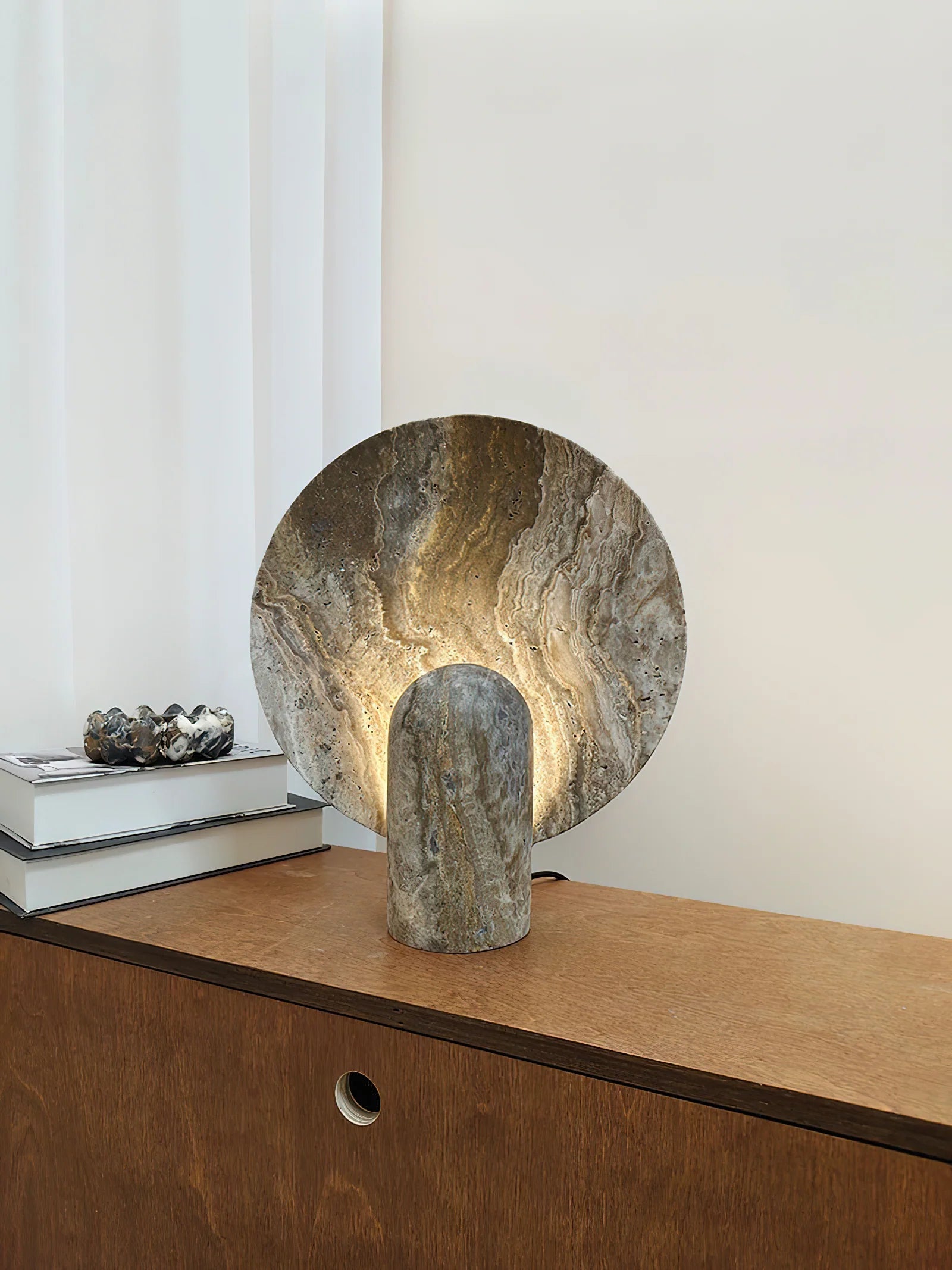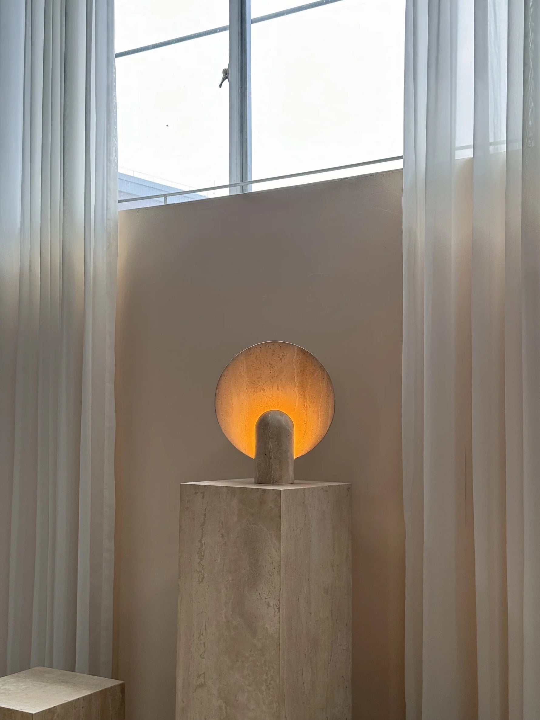 - Elevate your space with the Surface Table Lamp, a striking ambient light crafted from solid stone. Each sconce is cast in two interlocking halves, creating a sculptural silhouette that blends organic texture with modern design.