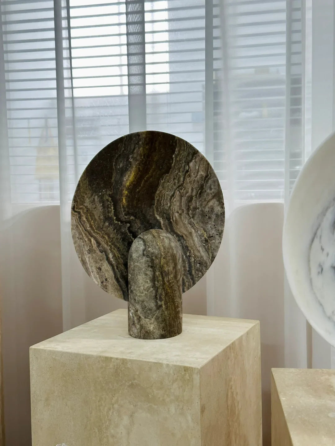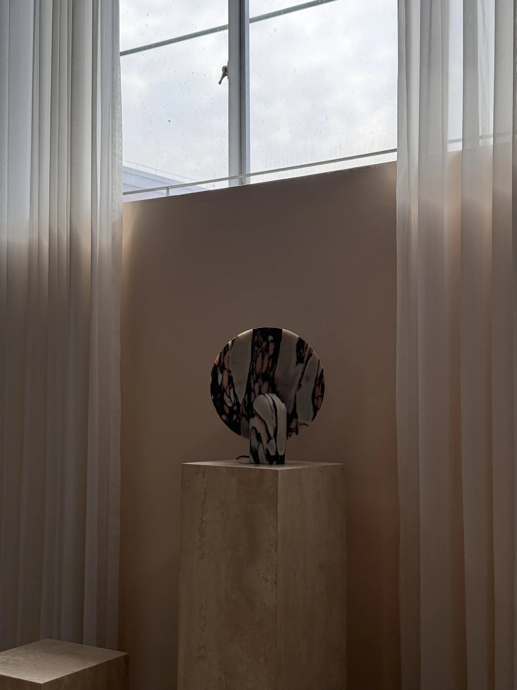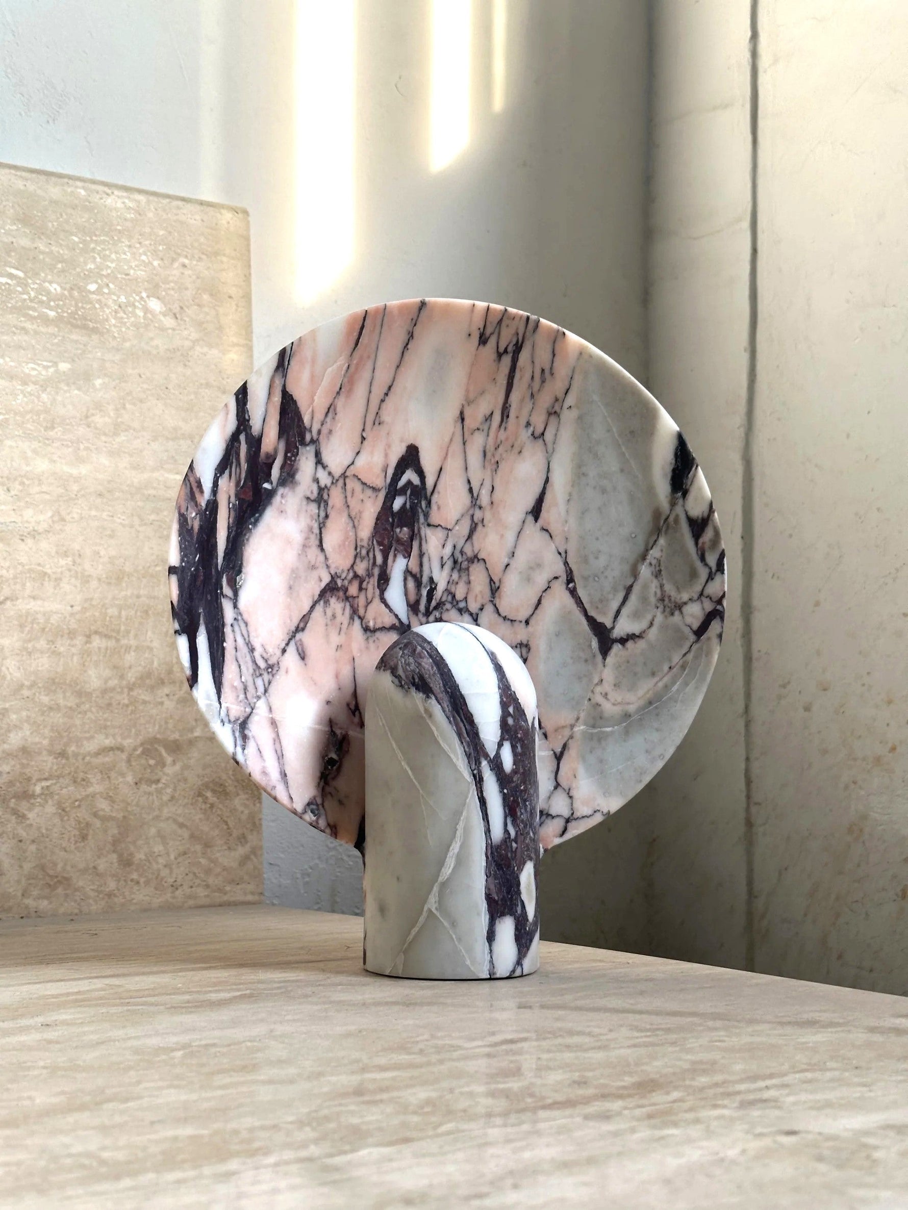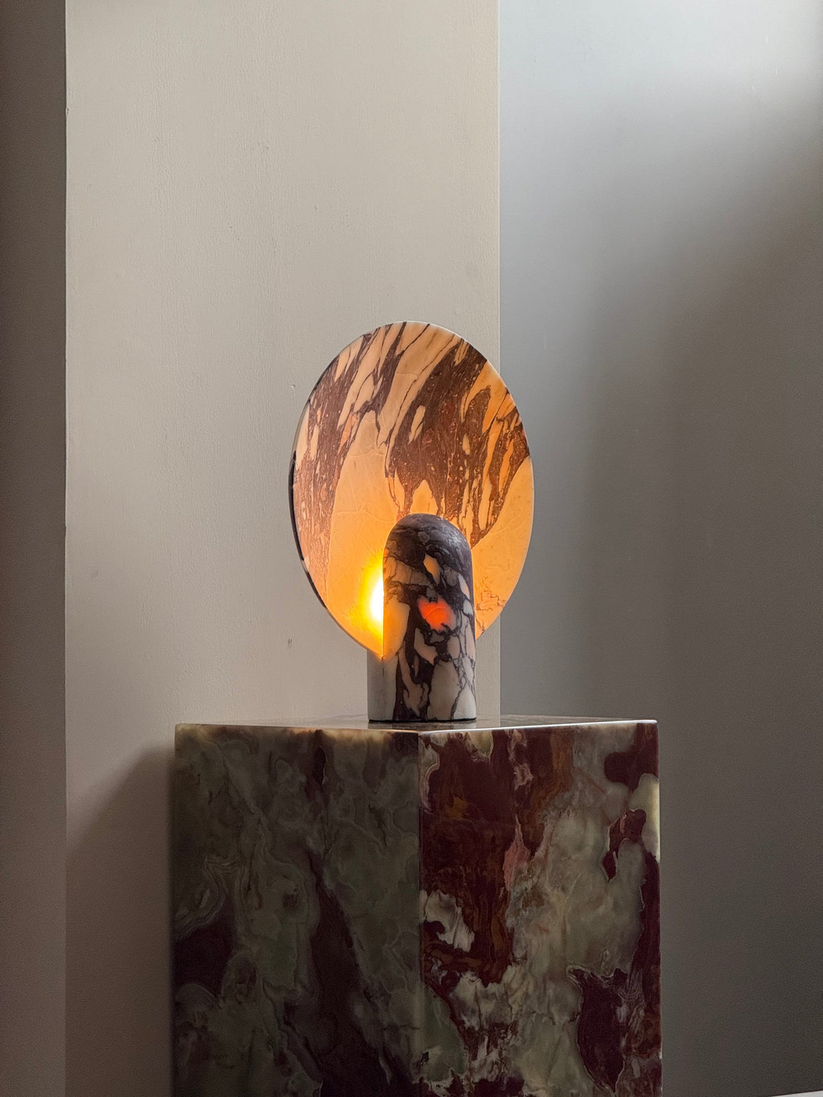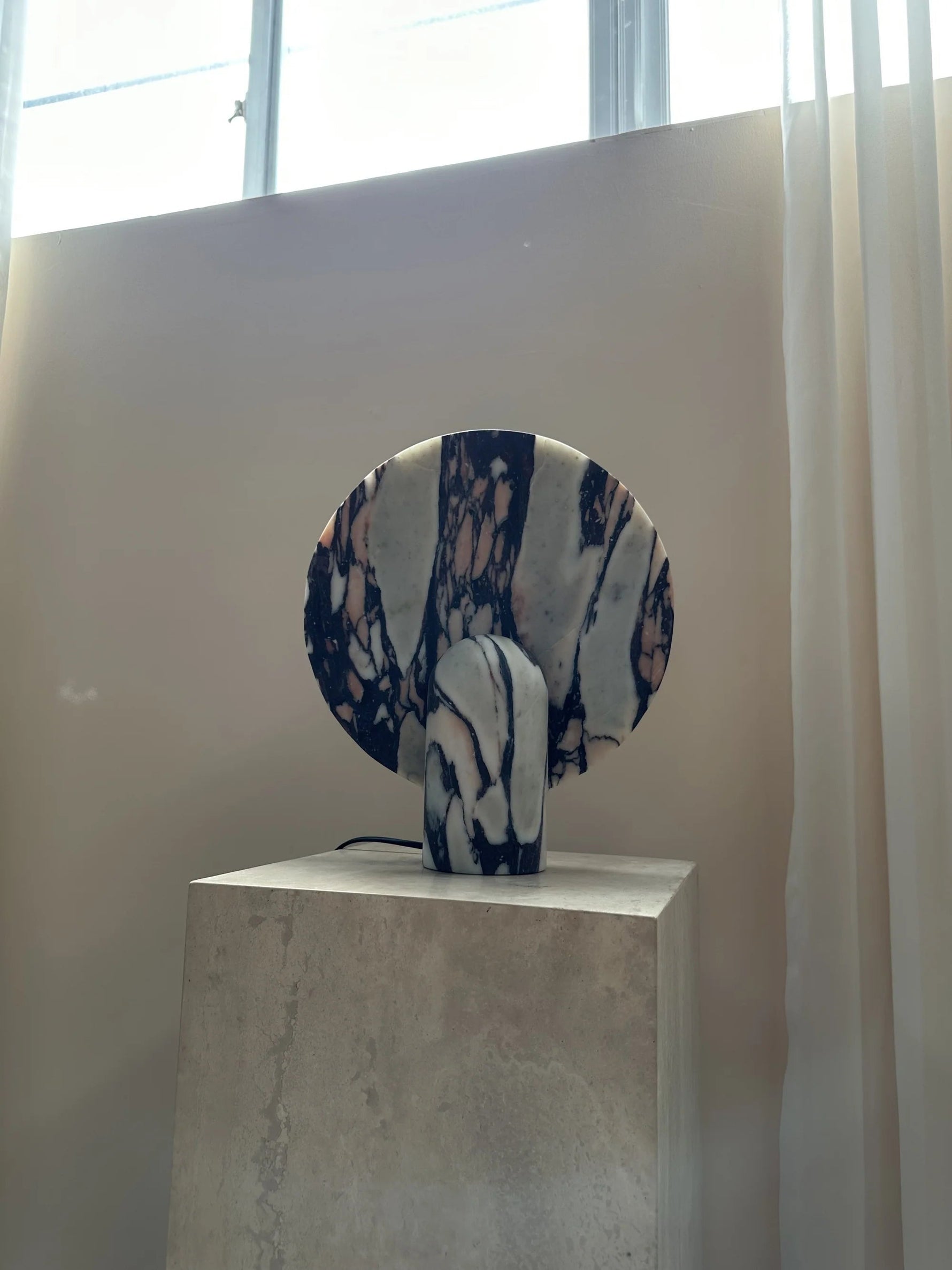 - Elevate your space with the Surface Table Lamp, a striking ambient light crafted from solid stone. Each sconce is cast in two interlocking halves, creating a sculptural silhouette that blends organic texture with modern design.