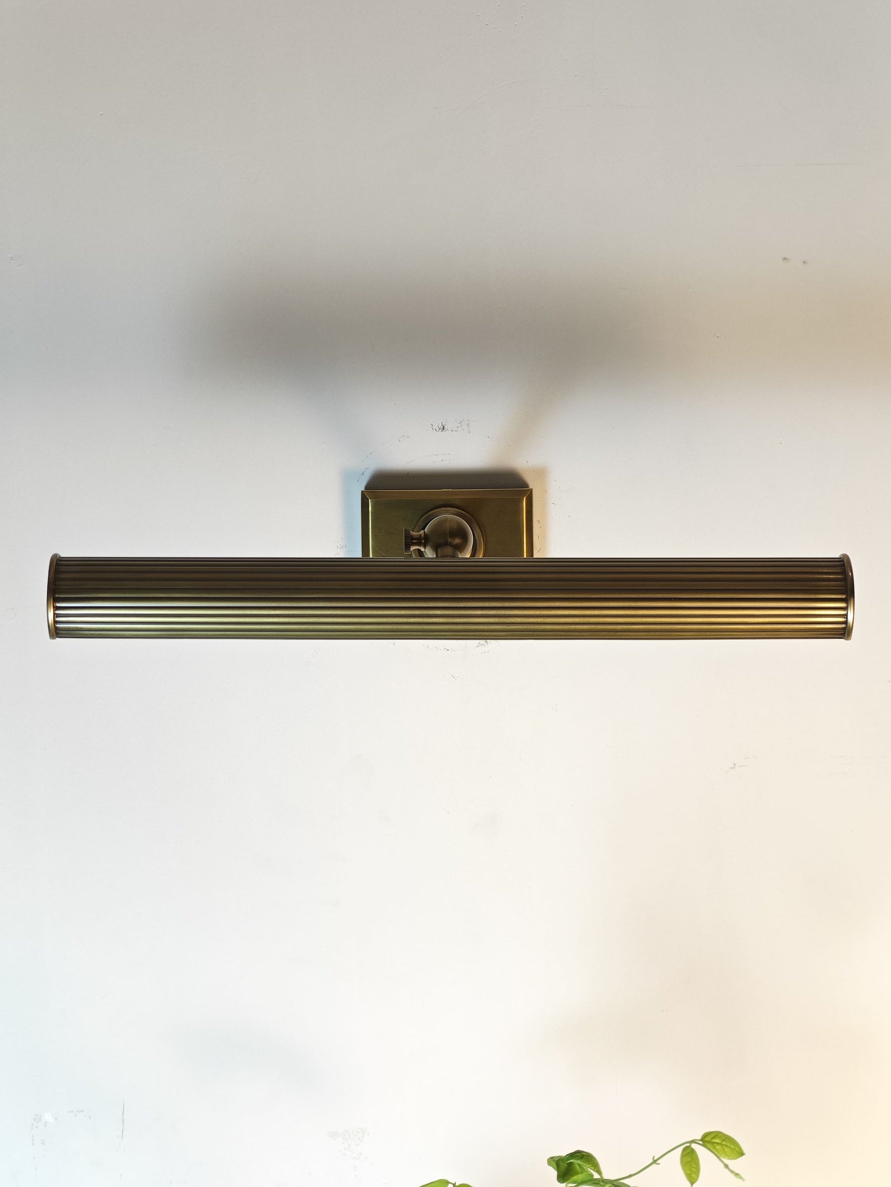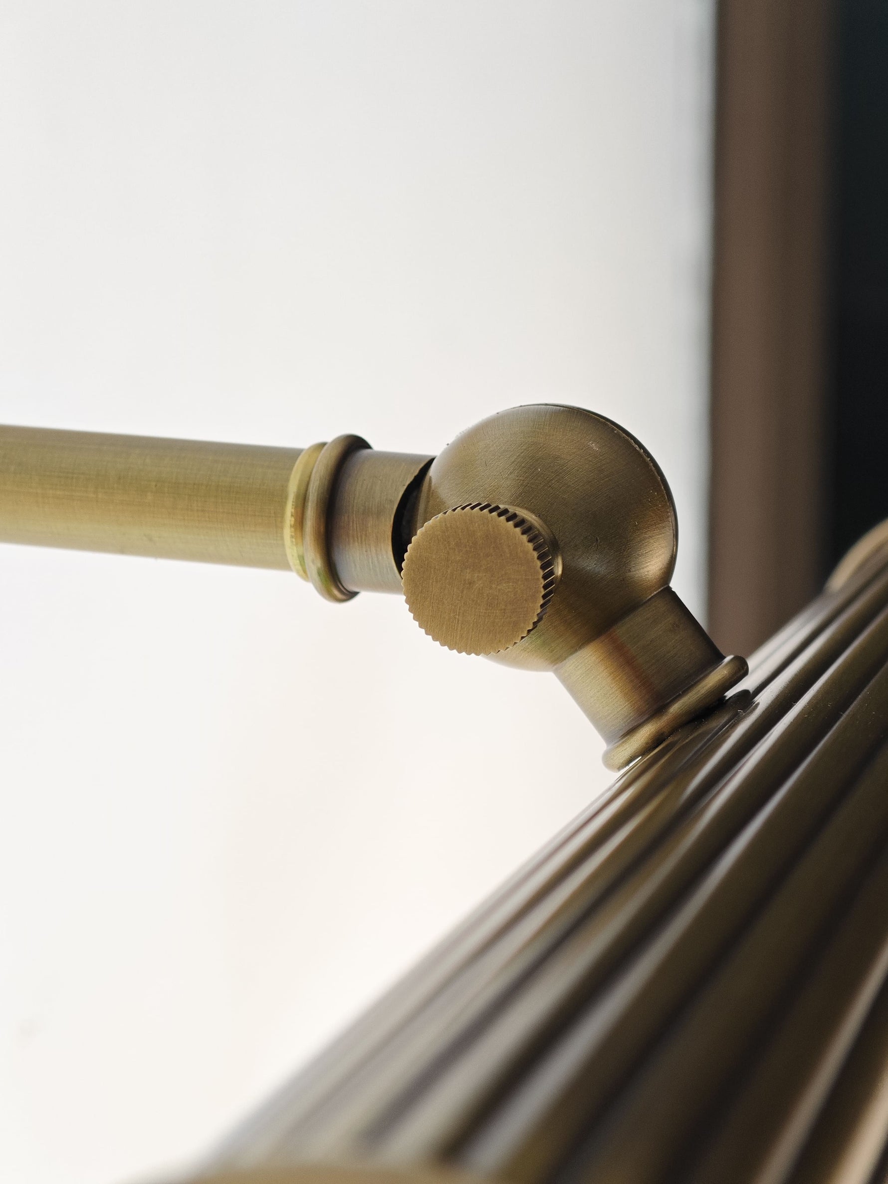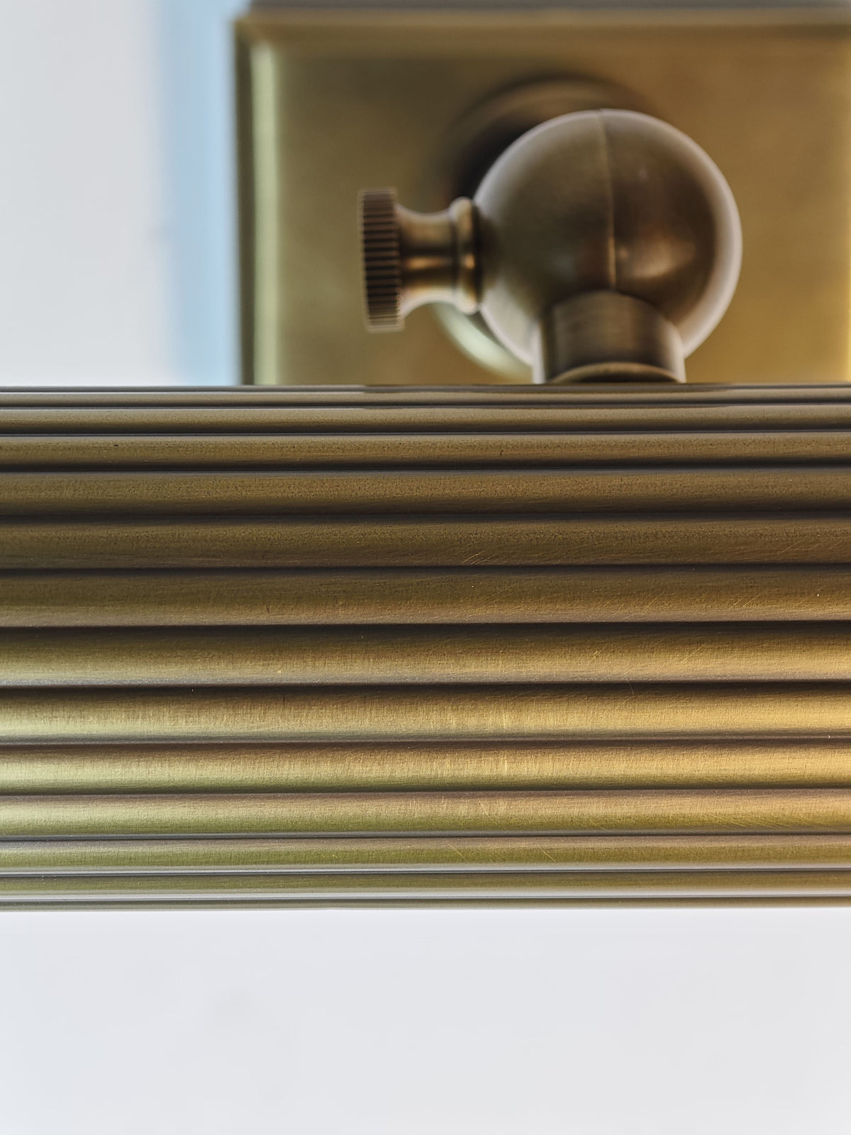 - We believe the details matter as much in the frame as they do on the canvas. That’s why the Amelia is forged from real, solid brass, hand-finished to achieve a rich, aged patina. The distinctive ribbed detailing adds a layer of texture and depth, echoing the craftsmanship of a bygone era while delivering modern, gallery-quality illumination. This is a piece designed to be admired even when switched off.