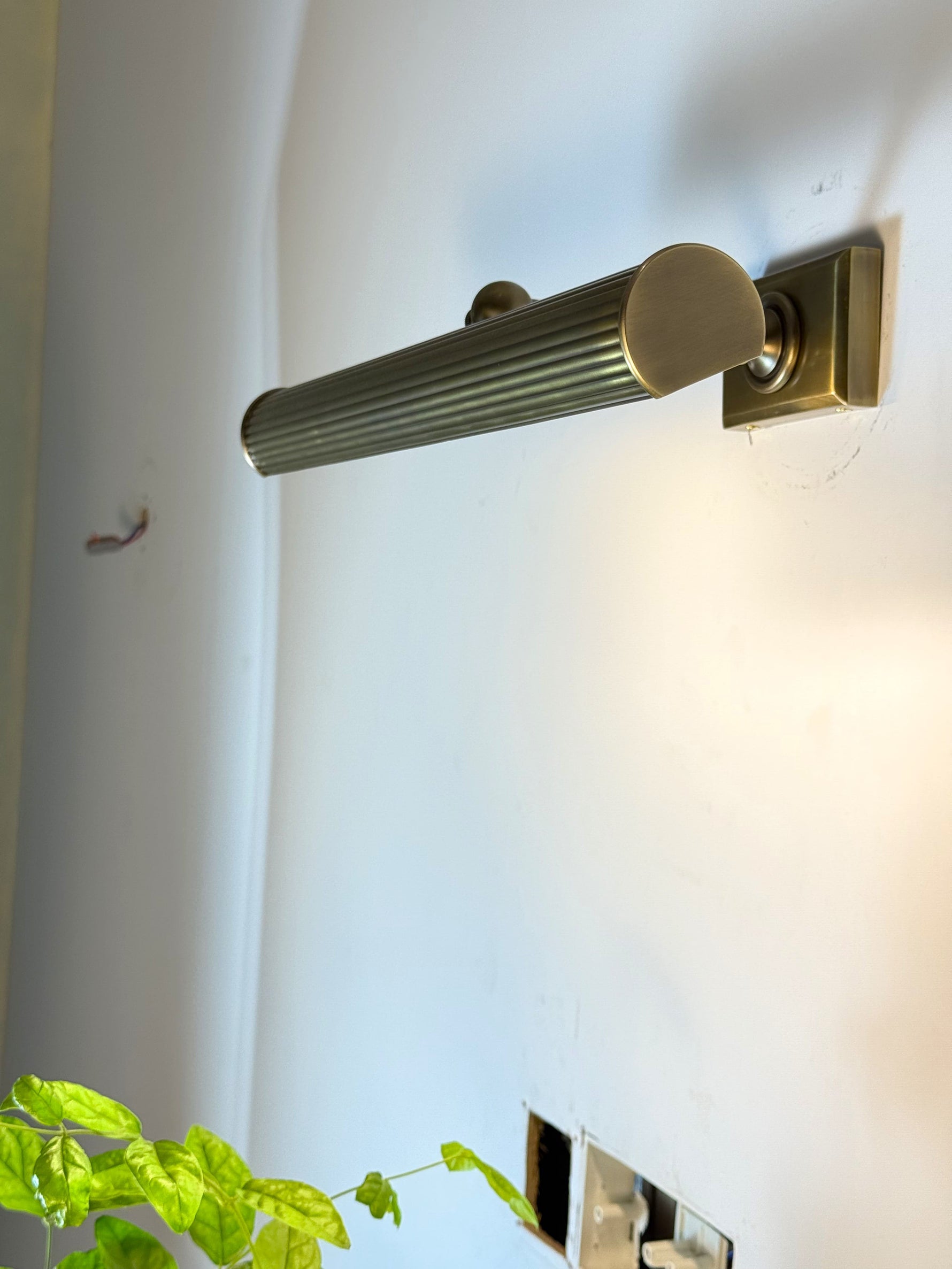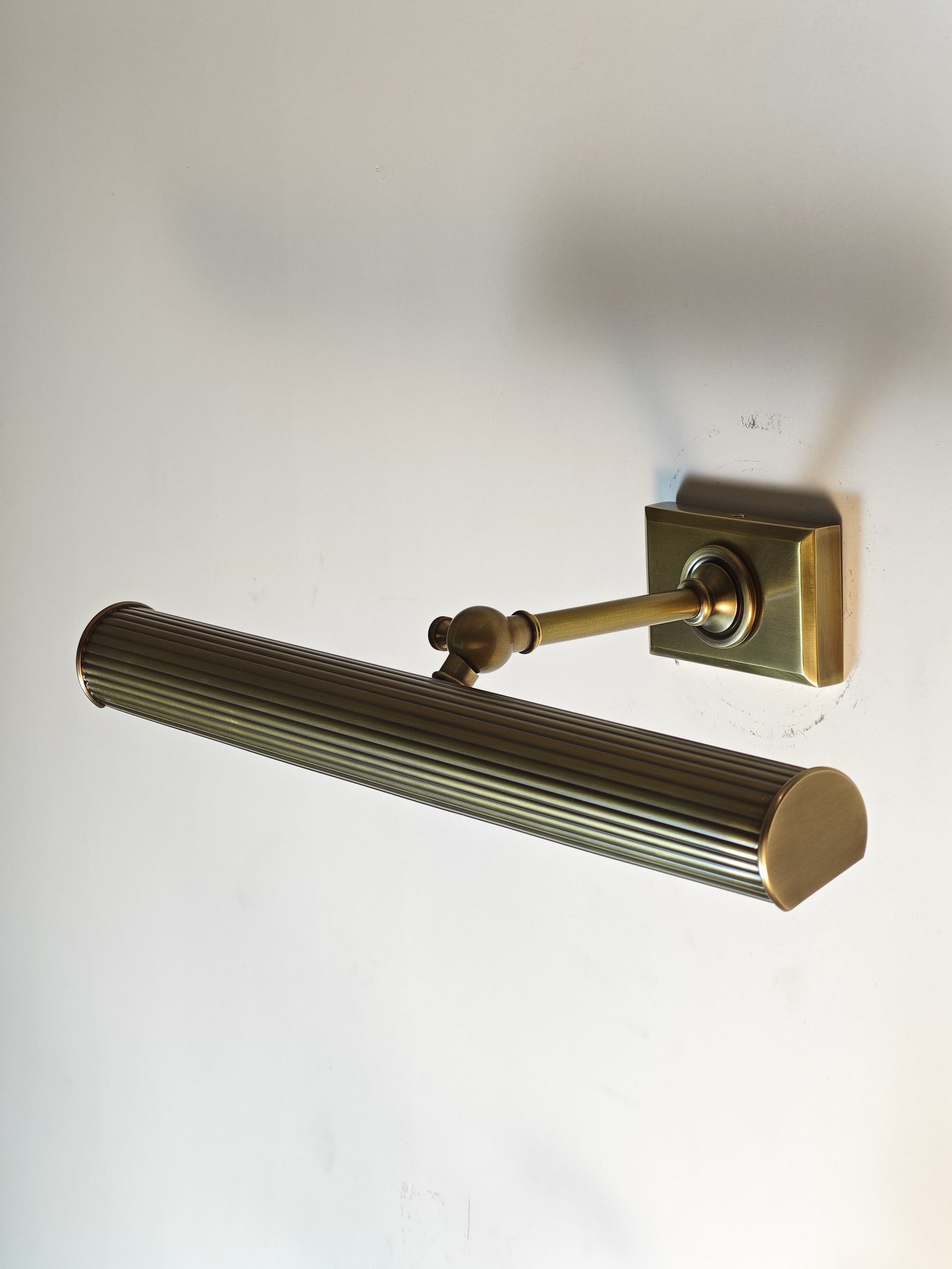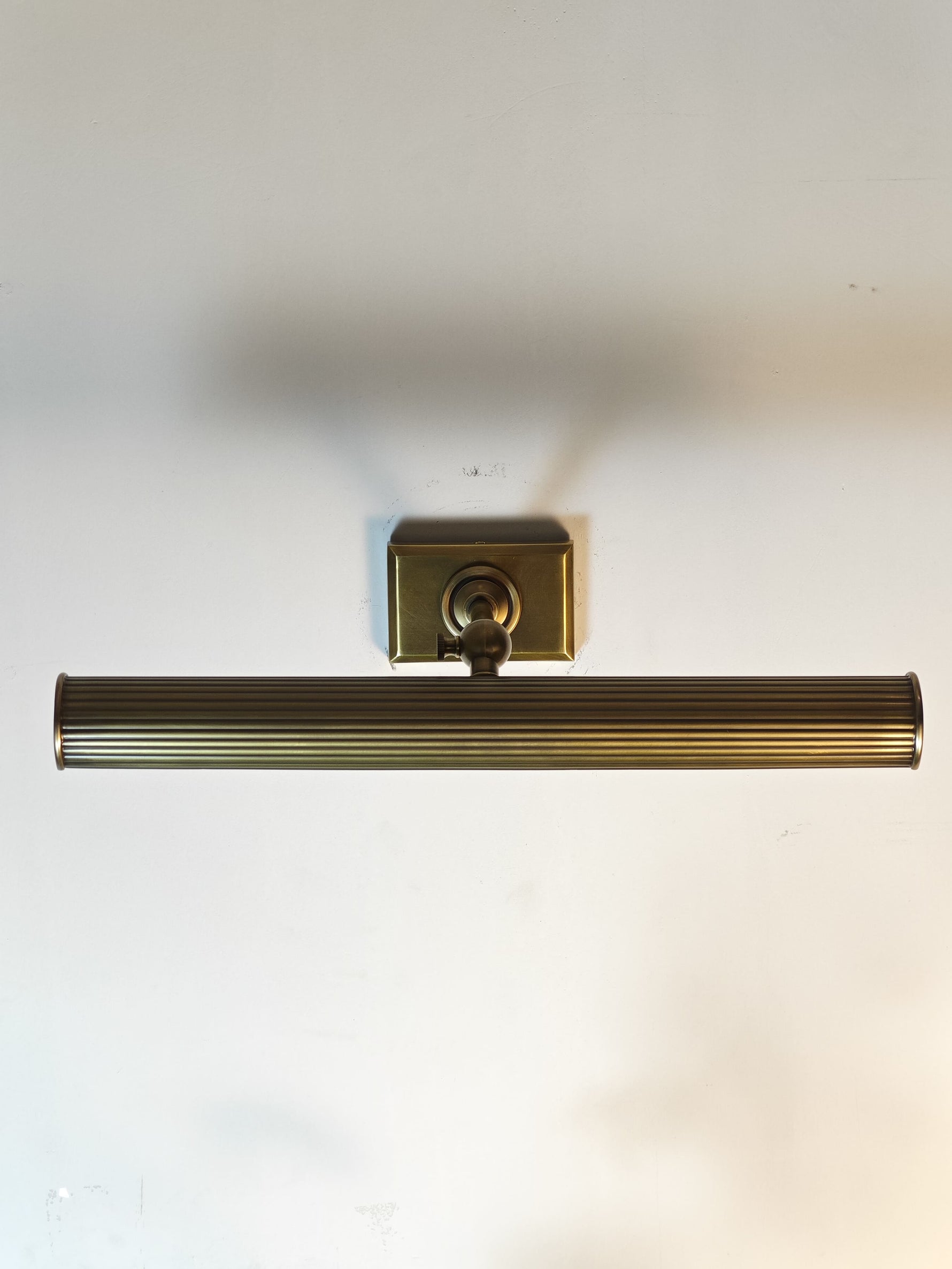 - We believe the details matter as much in the frame as they do on the canvas. That’s why the Amelia is forged from real, solid brass, hand-finished to achieve a rich, aged patina. The distinctive ribbed detailing adds a layer of texture and depth, echoing the craftsmanship of a bygone era while delivering modern, gallery-quality illumination. This is a piece designed to be admired even when switched off.