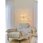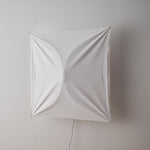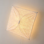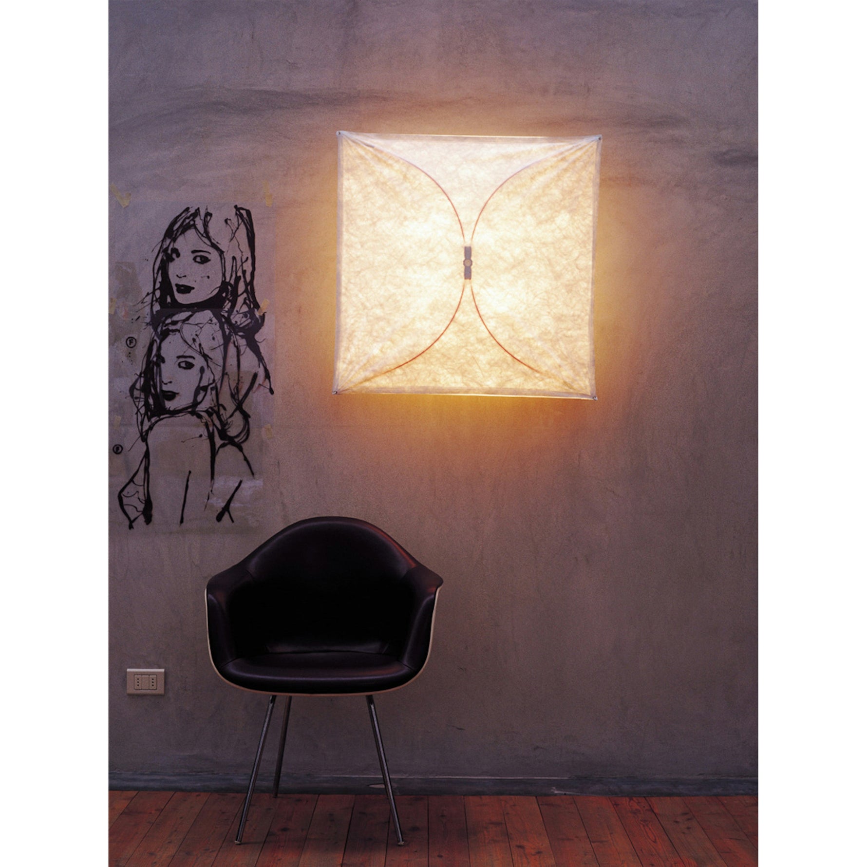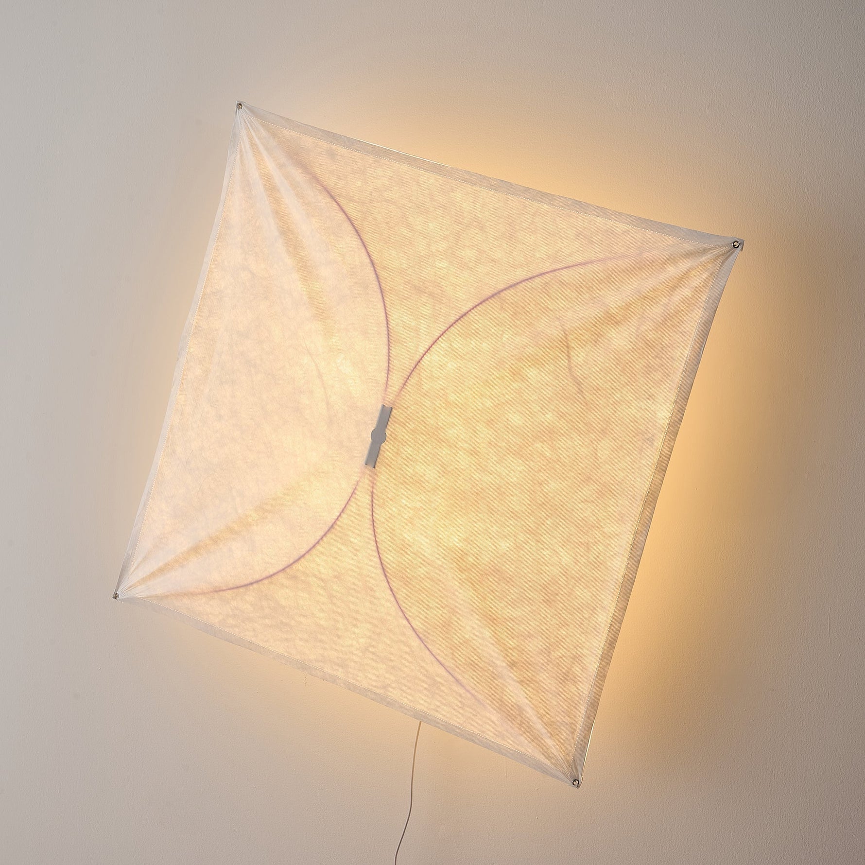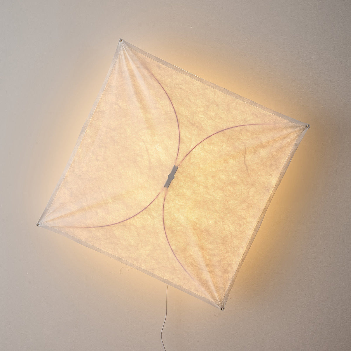 - The Ariette Wall Lamp features a square silhouette crafted from two soft, synthetic fabric squares stretched over sleek fiberglass rods. The combination of textures creates a visually interesting piece that complements a variety of design styles.