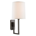 - The design’s true genius lies in its balanced contrast. The sconce is framed by a square architecture, defined by clean, sleek lines that offer a structured and modern graphic element. Within this frame rests the perfectly rounded linen shade, a soft circular form that provides a beautiful visual counterpoint. This interplay between the square and the circle creates a stylish, architecturally interesting look that feels both grounded and graceful, making it a versatile piece that complements a wide array of decor styles from Mid-Century Modern and Industrial to Scandinavian and Transitional.