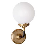 - Bistro Single Sconce crafted with precision, the design features slender, gracefully arched metal arms that create an elegant and airy silhouette. This delicate framework is crowned with a refined glass globe, diffusing a soft, inviting light that enhances the mood without overwhelming the space. The collection's clean lines and minimalist profile ensure it lends a graceful touch to your walls, making it a versatile choice for modern, farmhouse, or industrial decors.