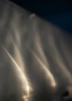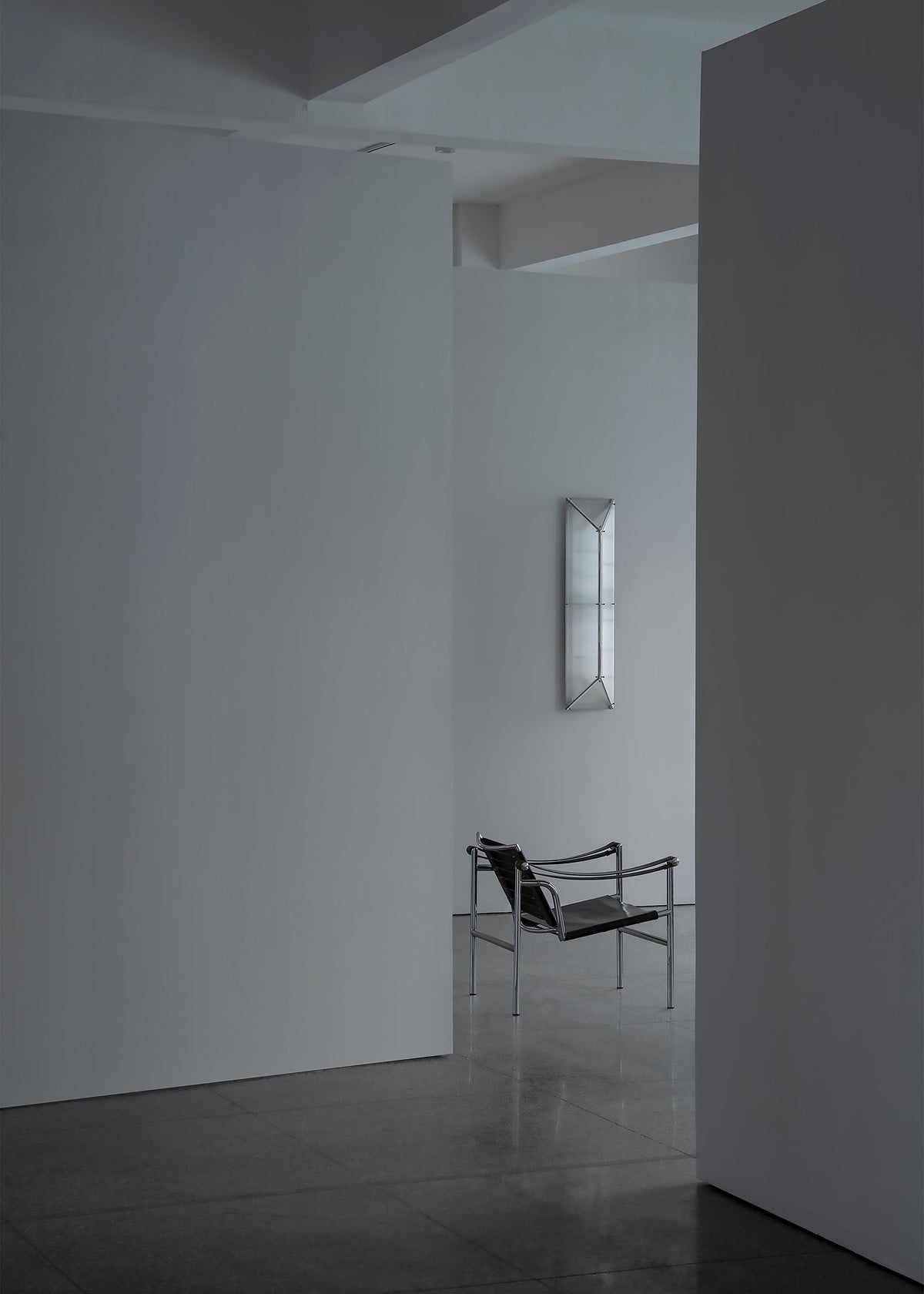 • The Fragment #05 features a meticulously crafted design where glass and metal intertwine to envelop the light source. As light travels through its precise, geometric structure, it interacts with the space in captivating ways—sometimes softly illuminating the wall, other times breaking free to extend infinitely, transforming limited space into a dynamic interplay of light and shadow.