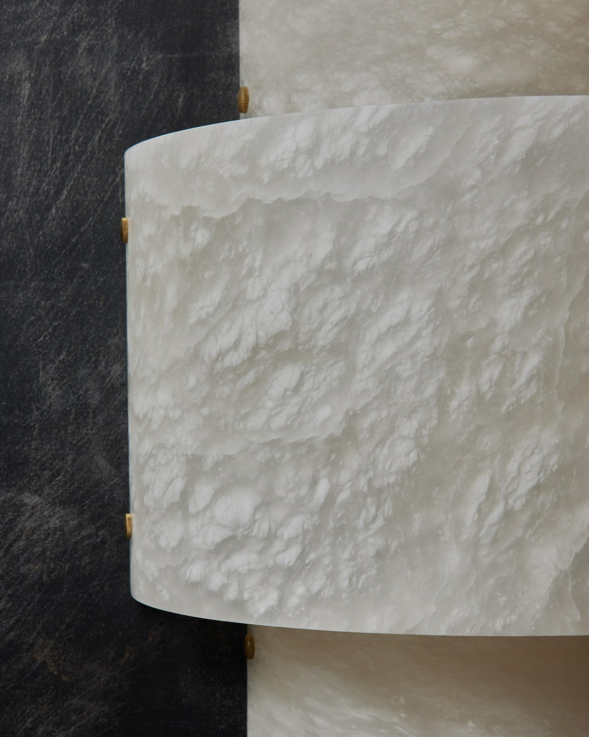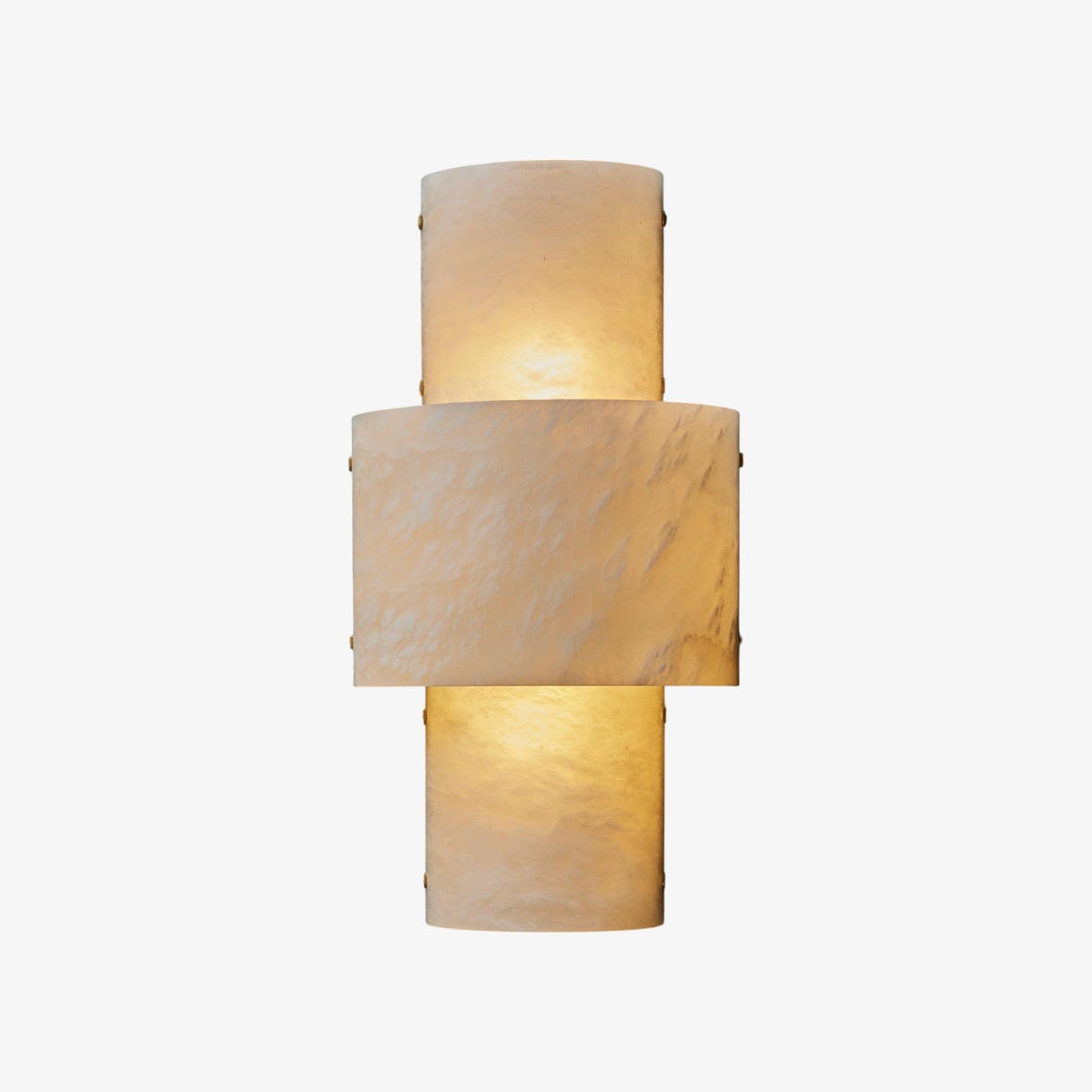 - Discover the perfect fusion of modern design and organic beauty. Our wall sconce features three hand-finished alabaster half-cylinders mounted on a elegant brass backplate, creating a sculptural lighting piece that radiates sophistication.