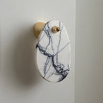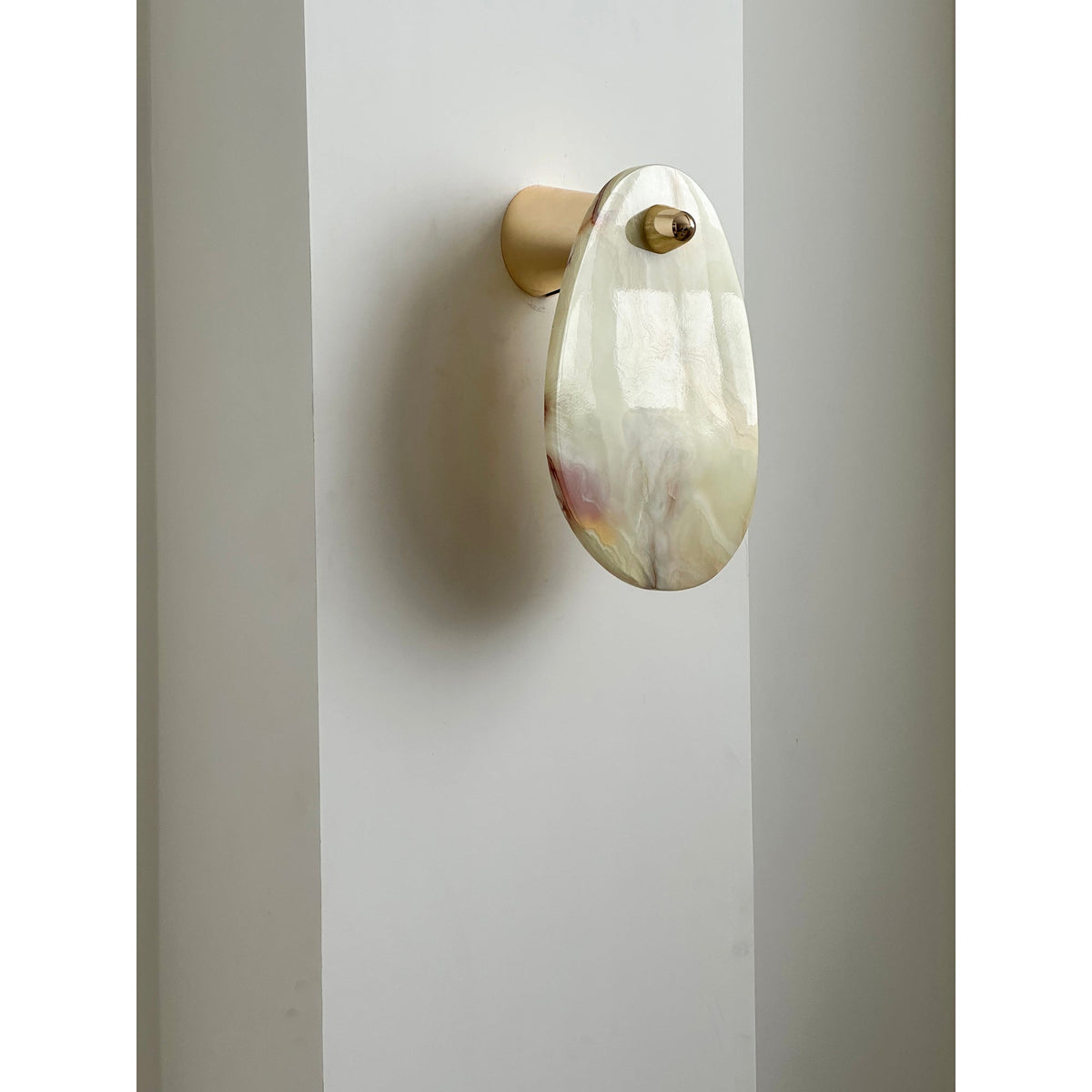 - Elevate your space with the Kelsie Wall Sconce, a stunning fusion of natural beauty and modern sophistication. Each sconce features a handcrafted marble or jade lamp body, showcasing a warm, luxurious texture with unique veining patterns—ensuring no two pieces are alike. The oval-shaped stone exudes organic elegance, while the gold-finished iron frame adds a touch of refined opulence and sturdy support.