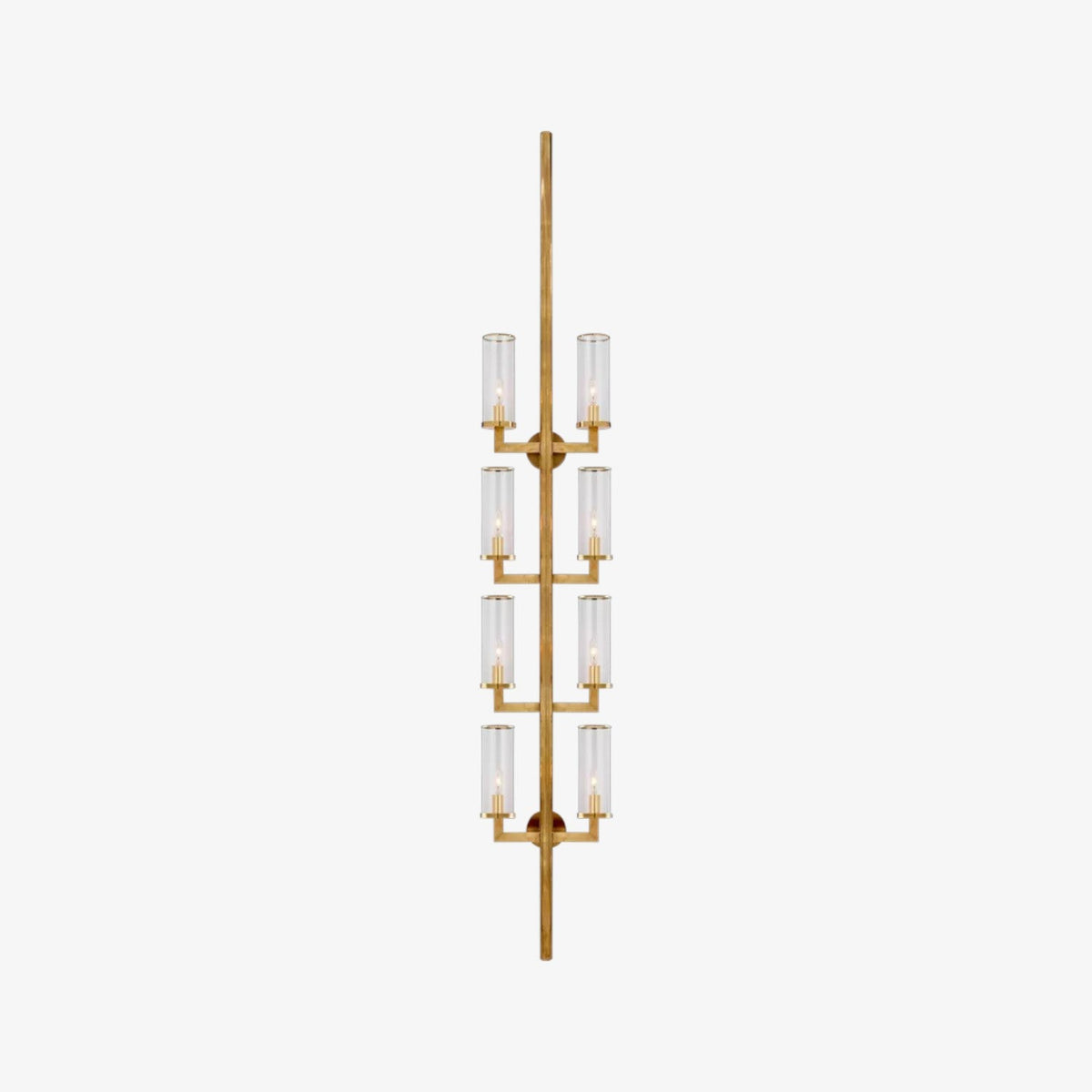 - Suspended within or alongside this brass form are Liaison Statement Sconce's true soul: the fractured-glass shades. Each glass piece is a unique canvas, featuring a dynamic pattern of fissures and textures that capture and refract light in a mesmerizing dance. Unlike standard glass, this fractured finish creates a soft, multifaceted glow that is both inviting and dramatic, eliminating harsh glare and casting intricate shadows that animate your walls with every passing hour.