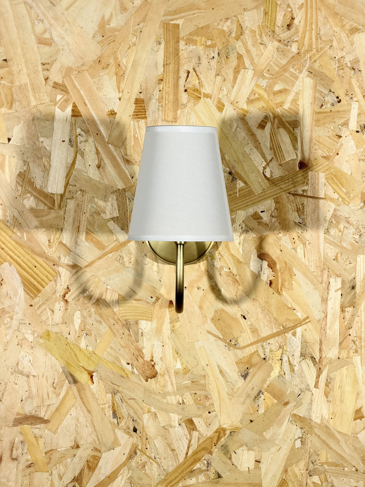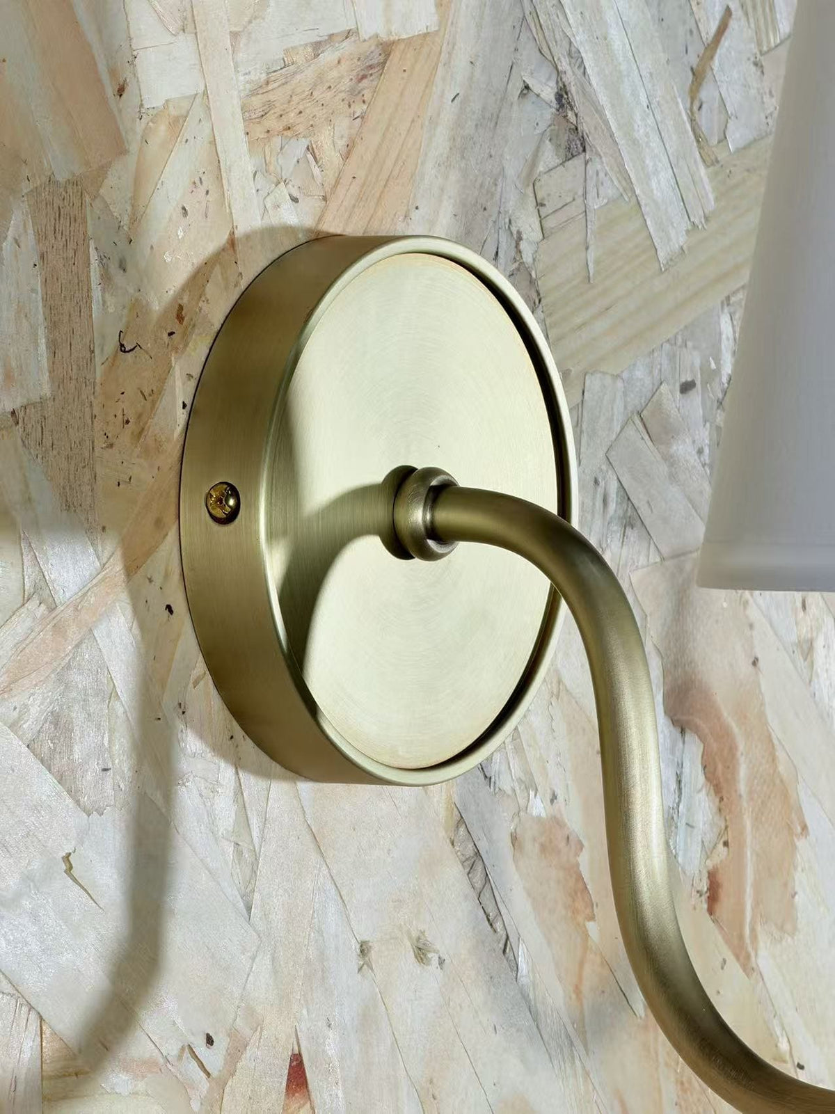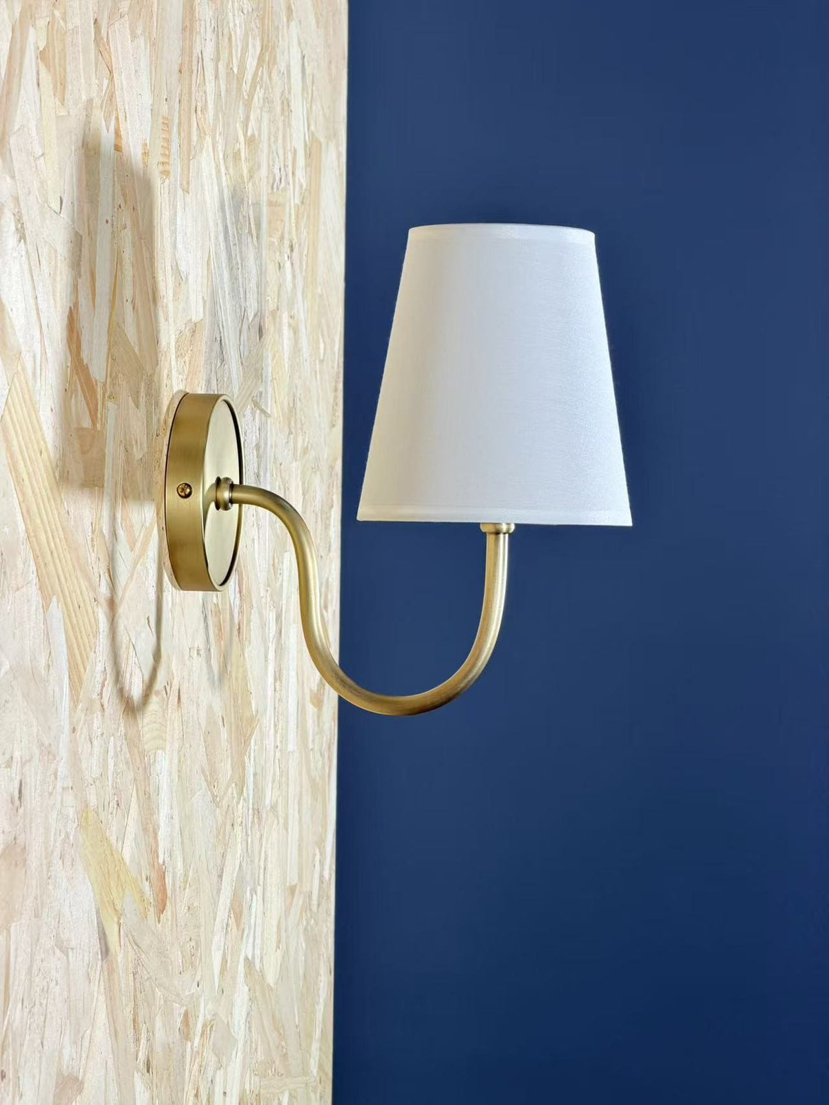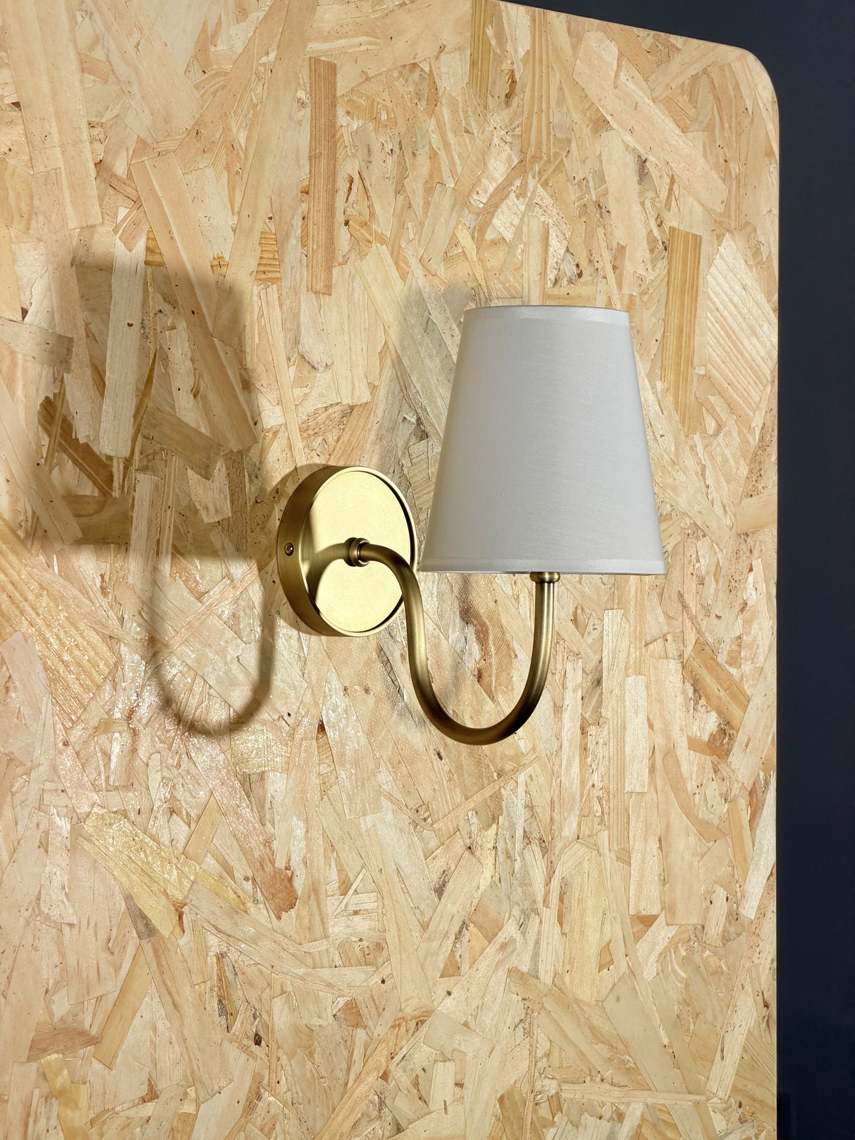 - The foundation of its design is the elegant interplay between the enduring beauty of brass and the organic, breathable texture of natural linen. The warm, polished brass frame is meticulously formed into gentle, curved lines that catch the light softly throughout the day. This structure cradles a drum shade of premium, natural linen, whose subtle variations and soft weave ensure each sconce is uniquely its own.